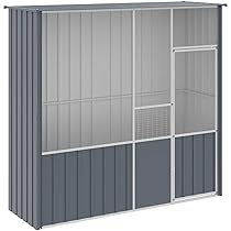 Deine Vögel werden diese riesige Voliere lieben! Mit 215x210x247cm (BxTxH) bietet sie mega viel Platz zum Fliegen und Toben. Aus robustem pulverbeschichtetem Stahl - vollständig wetterfest und UV-beständig. Die große Eingangstür macht Reinigung und Pflege super einfach. Der industrielle Look in Grau passt perfekt in jeden Garten oder Außenbereich. Ideal für mehrere Vögel - damit haben sie genug Bewegungsfreiheit. Montage benötigt 2 Personen, aber die Anleitung ist klar und verständlich. Deine gefiederten Freunde werden sich in ihrem neuen Zuhause pudelwohl fühlen!