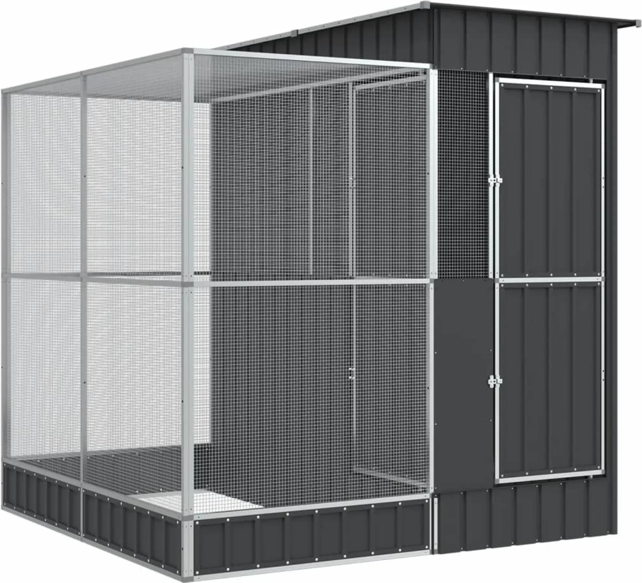 • HUAKEHOM Voliere 215x210x247cm - Grau, Stahl, Für Außenbereich