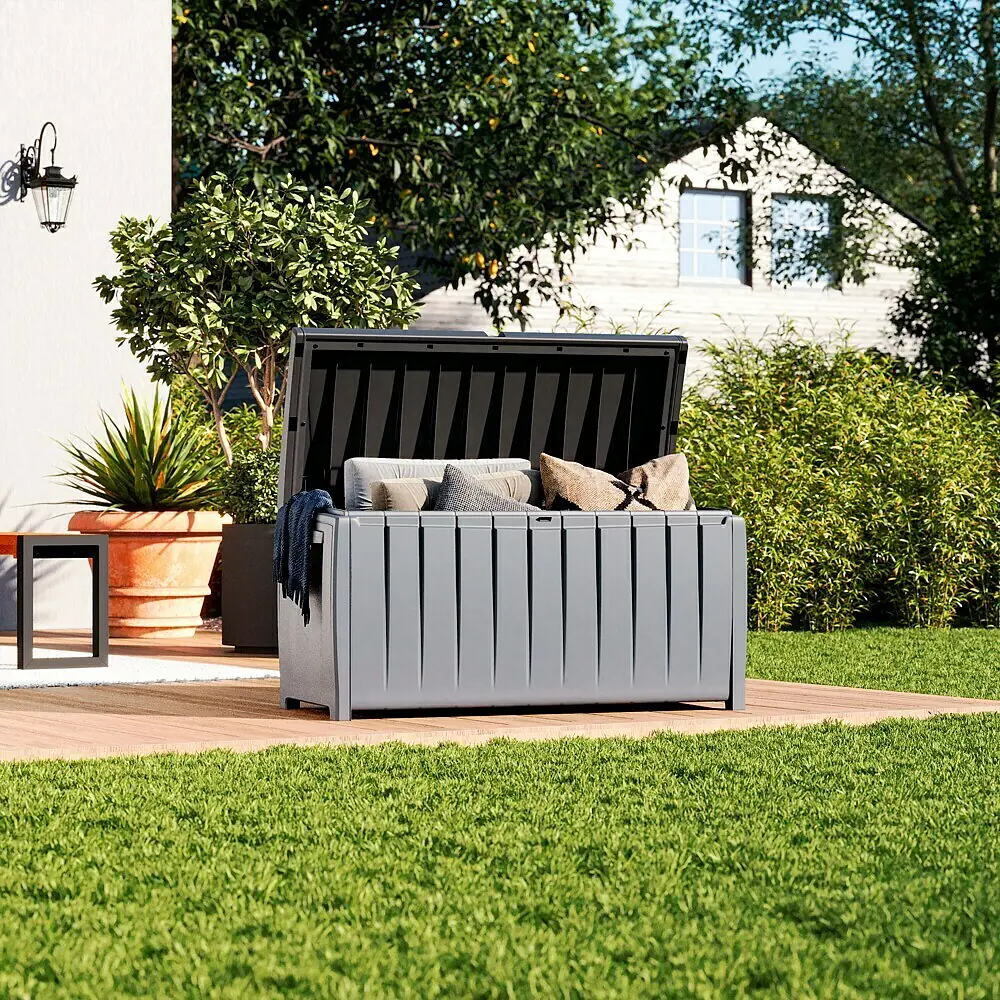 Wow, diese Gartenbox von CLALER ist einfach praktisch! Mit den Maßen 129×67×65 cm bietet sie volle 410 Liter Stauraum - perfekt für Kissen, Decken, Gartengeräte und alles, was du wettergeschützt unterbringen willst. Hergestellt aus robustem verzinktem Stahl und Kunststoff, hält sie auch bei schlechtem Wetter problemlos stand. Das coole Feature: Die Box dient nicht nur als Aufbewahrung, sondern auch als zusätzliche Sitzgelegenheit für deine Gartenparty! Der Klappdeckel macht das Öffnen und Schließen super einfach, und das zeitlose Design in Grau passt zu jeder Garteneinrichtung. Einfach aufbauen (ja, Zusammenbau ist nötig, aber kein Hexenwerk) und schon hast du Ordnung auf deiner Terrasse oder im Garten. Die Innenmaße von 119×59×60 cm bieten wirklich viel Platz - da verschwinden selbst größere Gegenstände problemlos. Einfach genial für alle, die ihren Outdoor-Bereich ordentlich und stylisch halten wollen!