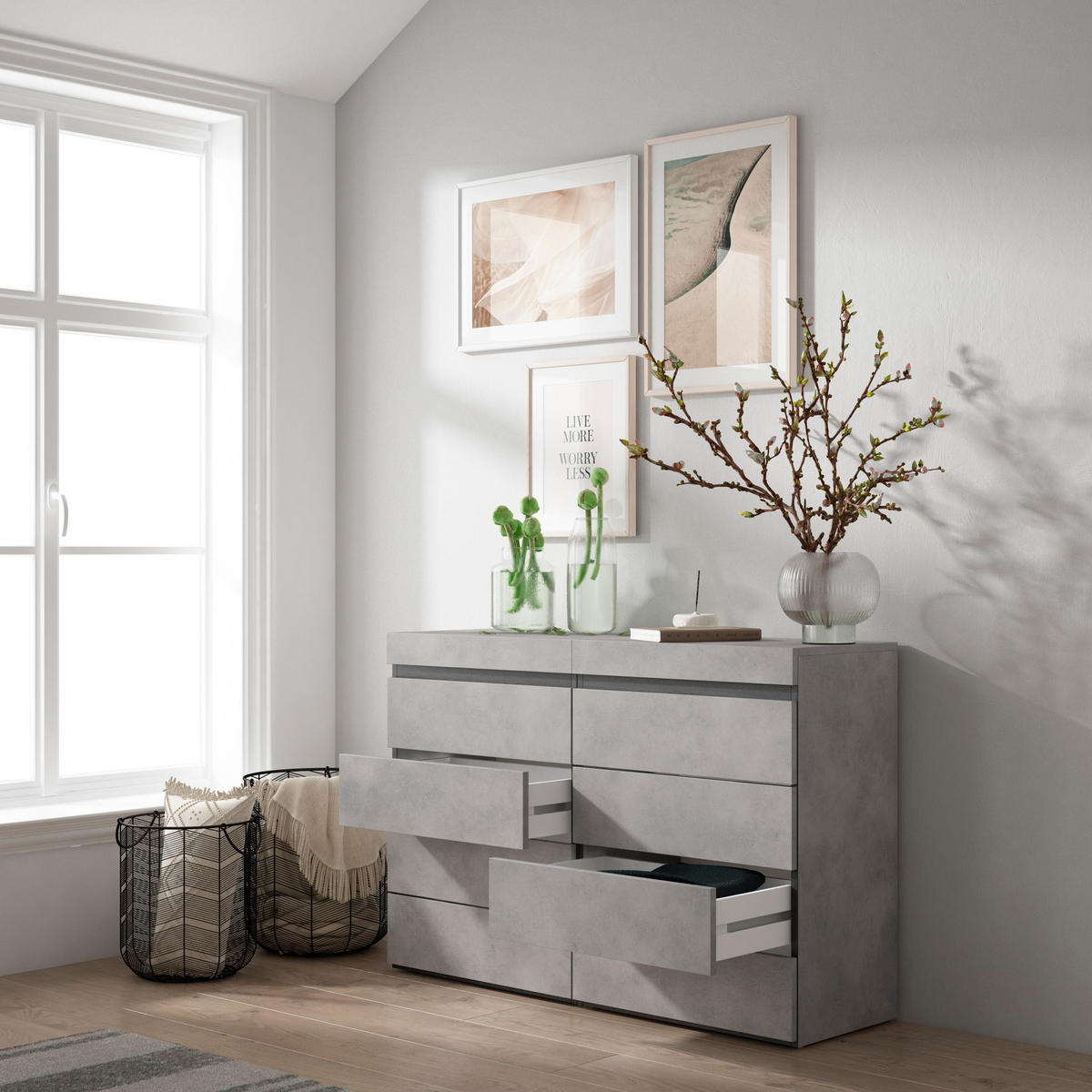 Dieses stylische Sideboard bringt Ordnung und Stil in dein Wohnzimmer! Mit 120x40x80 cm bietet es genug Stauraum für alles, was rumliegt: DVDs, Bücher, Geschirr oder auch deine Gaming-Sammlung. Die drei Schranktüren mit praktischen Griffen verstecken den Inhalt dekorativ, während die Innenablagen für perfekte Organisation sorgen. Das robuste Stahlgestell garantiert einen stabilen Stand - da wackelt nichts! Besonders praktisch: Die pflegeleichte Oberfläche lässt sich super einfach reinigen, ein feuchtes Tuch genügt. Aufbau? Kein Problem! Mit der detaillierten Anleitung und allem nötigen Zubehör baust du das Sideboard fix zusammen. Ob als Fernsehtisch, Bar oder einfach nur als stylischer Stauraum - dieses Möbelstück passt sich deinen Bedürfnissen an. In modernem Grau passt es zu fast jedem Einrichtungsstil. Mehr Ordnung, mehr Stil, mehr Wohnqualität - was will man mehr?