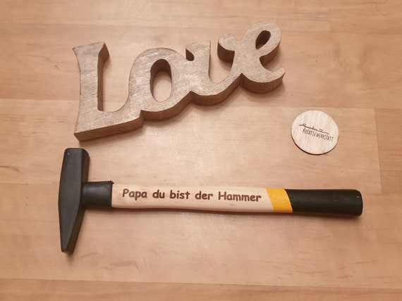 Wow, was für ein cooles Geschenk! Dieser Hammer kann komplett personalisiert werden! Einfach deinen Wunschtext eingeben - wird per Laser graviert! Sieht aus wie 3D - richtig edel! Der Hammerkopf entspricht DIN-NORM - professionelle Qualität! Aus massivem Stahl und Holz - hält ewig! Made in Germany - da weiß man was man hat! Perfekt für Papa, Handwerker oder einfach als lustiges Geschenk! Ob zum Geburtstag, Weihnachten oder Vatertag - immer richtig! Einfach Text aussuchen, bestellen und staunen! So macht Schenken Spaß!