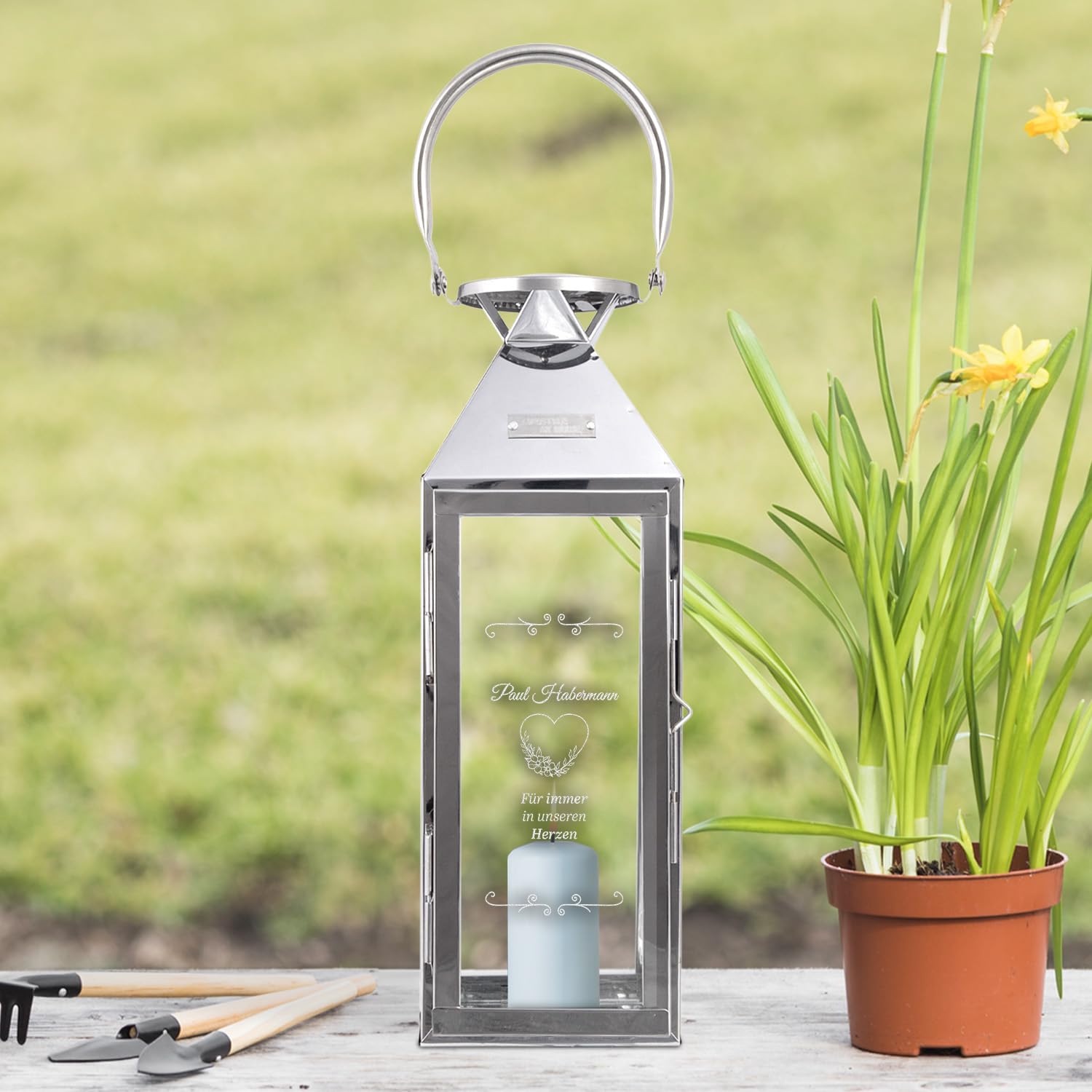 Ein ganz besonderes Andenken für deinen Liebsten! Diese wunderschöne Grablaterne aus Edelstahl mit echtem Glas ist absolut wetterfest und hält jedem Wetter stand. Du kannst sie mit einem persönlichen Text und Motiv gravieren lassen - wähl zwischen Herz oder Pusteblume. Mit 28cm Höhe ist sie der perfekte Blickfang für jedes Grab. Ob auf dem Friedhof oder daheim als Erinnerungslicht - sie spendet Trost und bewahrt die Erinnerung. Hergestellt in Deutschland mit Liebe zum Detail. Ein würdevolles Geschenk für Hinterbliebene oder um selbst ein Zeichen zu setzen.