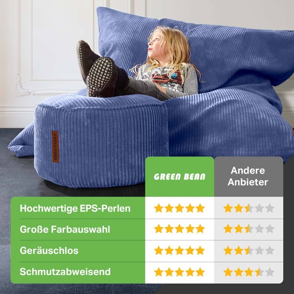 Mega bequemer Sitzsack in XXL! Gefüllt mit Memory-Schaum-Flocken aus Deutschland - passt sich perfekt an. Samtweicher Velours-Bezug - ultra kuschelig. Maße: 105x65 cm (3ft) - auch in größeren Größen erhältlich. Abnehmbarer Bezug - maschinenwaschbar und pflegeleicht. Perfekt zum Relaxen, Lesen, Gaming oder Fernsehen. Ergonomische Liege- und Sitzfläche - total bequem. Vakuumverpackt geliefert - entfaltet sich schnell. Ideal für Wohnzimmer, Jugendzimmer oder Gaming-Bereich. Macht jeden Raum gemütlicher. Einfach bestellen und den ultimativen Komfort genießen!