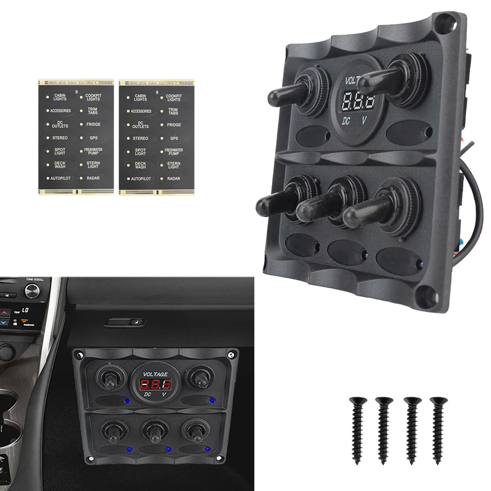 Alles unter Kontrolle mit diesem praktischen 5-fach Schalterfeld! Integriert sind 2 USB-Anschlüsse zum Laden, ein digitales Voltmeter zur Spannungskontrolle und eine 12V Zigarettenanzünder-Buchse. Mit 15A Sicherung gegen Überlastung geschützt und wasserdicht nach IP65 - perfekt für Boote und Marine-Einsatz. Funktioniert mit 12V und 24V Systemen, also ideal für Auto, Wohnmobil, ATV oder Boot. Schon vorverdrahtet - die Montage ist ein Kinderspiel. Vier Schrauben und DIY-Aufkleber sind im Lieferumfang. Organisiere deine Elektrik professionell!