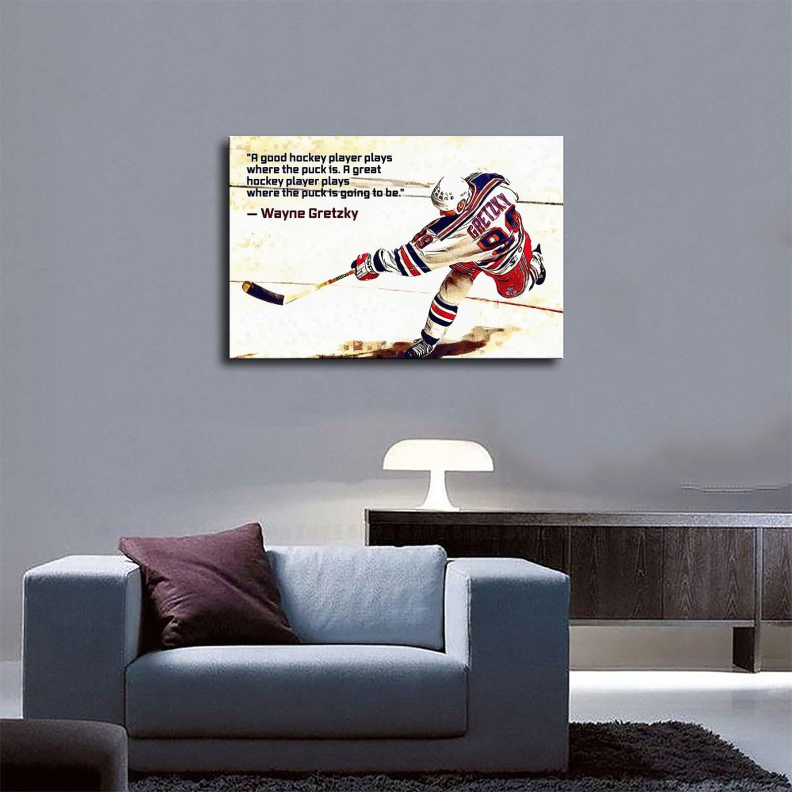 Für alle Eishockey-Fans! Dieses coole Leinwand-Poster zeigt die Legende Wayne Gretzky in Action und bringt Sport-Flair in dein Zuhause. Das 30x45 cm Bild gibt's wahlweise mit oder ohne Rahmen - je nachdem, was besser zu deinem Wohnstil passt. Gedruckt auf hochwertiger Leinwand mit wasserfester Tinte, die die Farben für über 30 Jahre frisch hält. Anders als Papier-Poster wellt sich die Leinwand nicht bei Feuchtigkeit und ist unempfindlicher. Super als Deko fürs Wohnzimmer, Jugendzimmer oder Büro - aber auch als Geschenk für Hockey-Begeisterte ein Volltreffer! Übrigens: Wir können auch individuelle Motive für dich anpassen - schick uns einfach dein Wunschbild! Die Lieferung kommt sicher verpackt und du kannst sofort loslegen mit der Dekoration. Einfach aufhängen und dich jeden Tag an deinem persönlichen Sport-Kunstwerk erfreuen!
