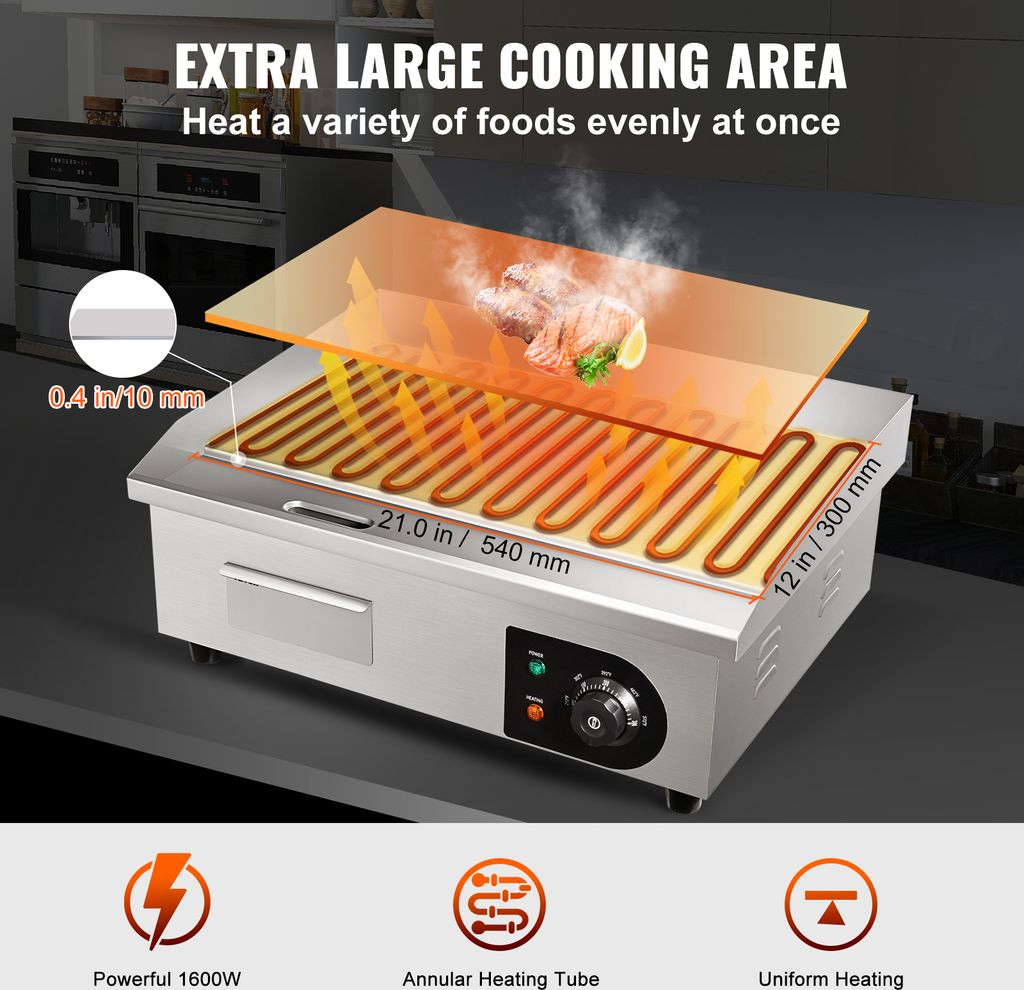 Profiküche für dein Zuhause oder Business! Diese massive Griddleplatte mit 4,4kW Leistung heizt super schnell auf und bietet eine riesige Kochfläche von 72x40cm. Perfekt für Pancakes, Steaks, Gemüse oder asiatische Gerichte. Die doppelte Temperaturregelung (122-572°F) ermöglicht unterschiedliche Zonen. Mit Luftschalter für sichere Bedienung - mindestens 40A Anschluss nötig. Die gusseiserne Platte verteilt die Hitze gleichmäßig und hält ewig. Seitliche Kühlöffnungen sorgen für gute Wärmeableitung. Ideal für Catering, Imbiss oder große Familienfeiern. Mach deine Küche zur Profi-Zone!