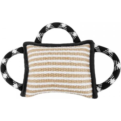Dein Hund liebt es zu kauen und zu zerren? Dieses Jute-Beisskissen mit 3 praktischen Griffen ist genau das Richtige! Mit 260 x 180 mm Größe und 90 mm langen Griffen perfekt für große, aktive Hunde. Das robuste Jute-Material ist extrem reißfest und hält auch starken Bissern stand. Die drei Griffe machen das Spielzeug super interaktiv - ideal für Zerrspiele mit dir oder anderen Hunden. Perfekt für Apportierspiele, Training und zur Beschäftigung. Hilft unerwünschtes Kauen an Möbeln zu verhindern und stärkt gleichzeitig die Kaumuskulatur. Fördert die Zahngesundheit und gibt deinem Hund eine sinnvolle Beschäftigung. Ob als Beißwurst, Dummy oder einfach als Spielzeug - dein Hund wird es lieben! Besonders geeignet für sportliche Hunderassen die Action lieben. Mach das Training zum Spaß und stärke die Bindung zu deinem Vierbeiner!