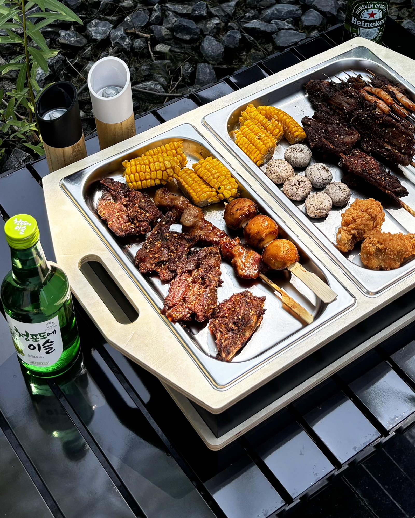 Damit dein Grillgut nicht kalt wird! Dieser praktische Warmhalter mit Kerzenunterstellung ist der Hit für jede Grillparty. Zwei Edelstahlschalen werden von Teelichtern gleichmäßig warm gehalten - so bleiben Steaks, Würstchen und andere Leckereien lange heiß und lecker. Kein Strom nötig, perfekt auch für Camping oder Gartenpartys. Das schwarze Design mit seitlichen Holzbrettchen sieht total stylisch aus und macht auf jedem Gartentisch eine gute Figur. Einfach zusammenschrauben - Schraubendreher liegt bei - und schon kann's losgehen. Super als Geschenk für Grillfans, zum Vatertag, Geburtstag oder einfach für dich selbst. Deine Gäste werden begeistert sein, wenn das Essen auch nach Stunden noch warm und genießbar ist. Endlich keine kalten Grill-Spezialitäten mehr - nur noch heißer Genuss von der ersten bis zur letzten Minute!
