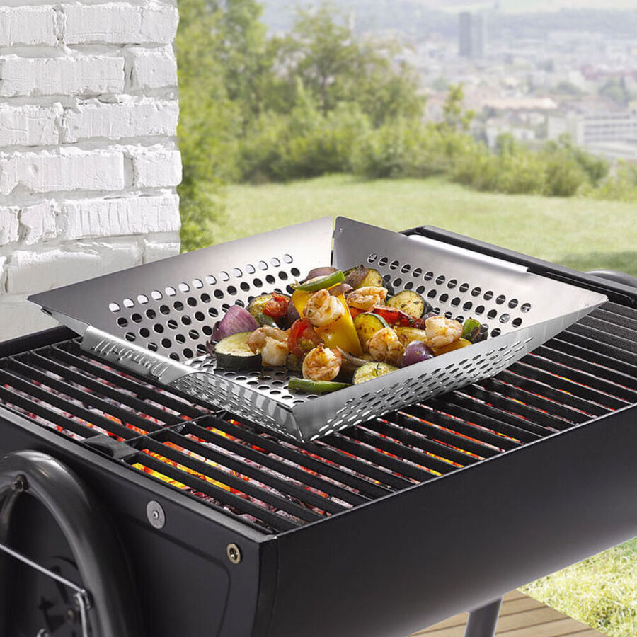 Alter, dieser Grillkorb ist genau das, was du für den nächsten Grillabend brauchst! Aus robustem Edelstahl - hält hohe Temperaturen aus und rostet nicht. Maße: 55 x 28 cm - plenty Platz für Gemüse, Fisch, Garnelen oder was du sonst so grillen willst. Das coole Verriegelungssystem hält alles sicher an Ort und Stelle - einfach umdrehen ohne dass was runterfällt! Der abnehmbare Griff macht ihn super praktisch zum Transportieren - passt easy in die mitgelieferte Tragetasche. Perfekt für Picknicks, Camping oder einfach den Garten. Macht das Grillen von kleinen Sachen so viel einfacher - nichts fällt mehr durch den Rost! Einfach reinlegen, zuklappen, grillen und genießen!