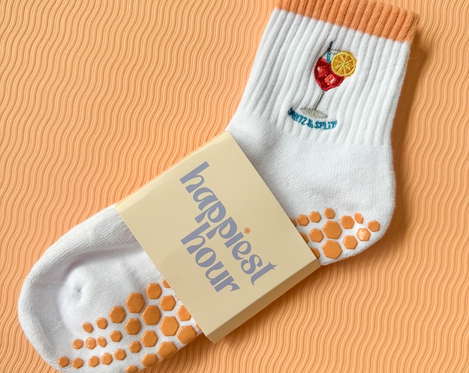 Oh, wie süß sind denn diese Pilates-Socken?! Mit dem bestickten Aperol Spritz-Motiv und den niedlichen Rüschen - da macht das Training gleich doppelt so viel Spaß! Die Silikon-Grip-Punkte an der Sohle geben dir perfekten Halt bei Pilates, Yoga oder Barre-Übungen. Kein Rutschen mehr bei Teaser Prep oder anspruchsvollen Balance-Übungen! Aus weicher, atmungsaktiver Baumwolle - super angenehm zu tragen. In Einheitsgröße, passt also den meisten Frauen. Ob im Studio oder beim Home-Workout - mit diesen Socken bist du nicht nur sicher unterwegs, sondern siehst auch noch mega stylisch aus! Perfektes Geschenk für Yoga-Liebhaberinnen oder einfach um sich selbst was Gutes zu tun. Aperol Spritz-Fans werden sie lieben!