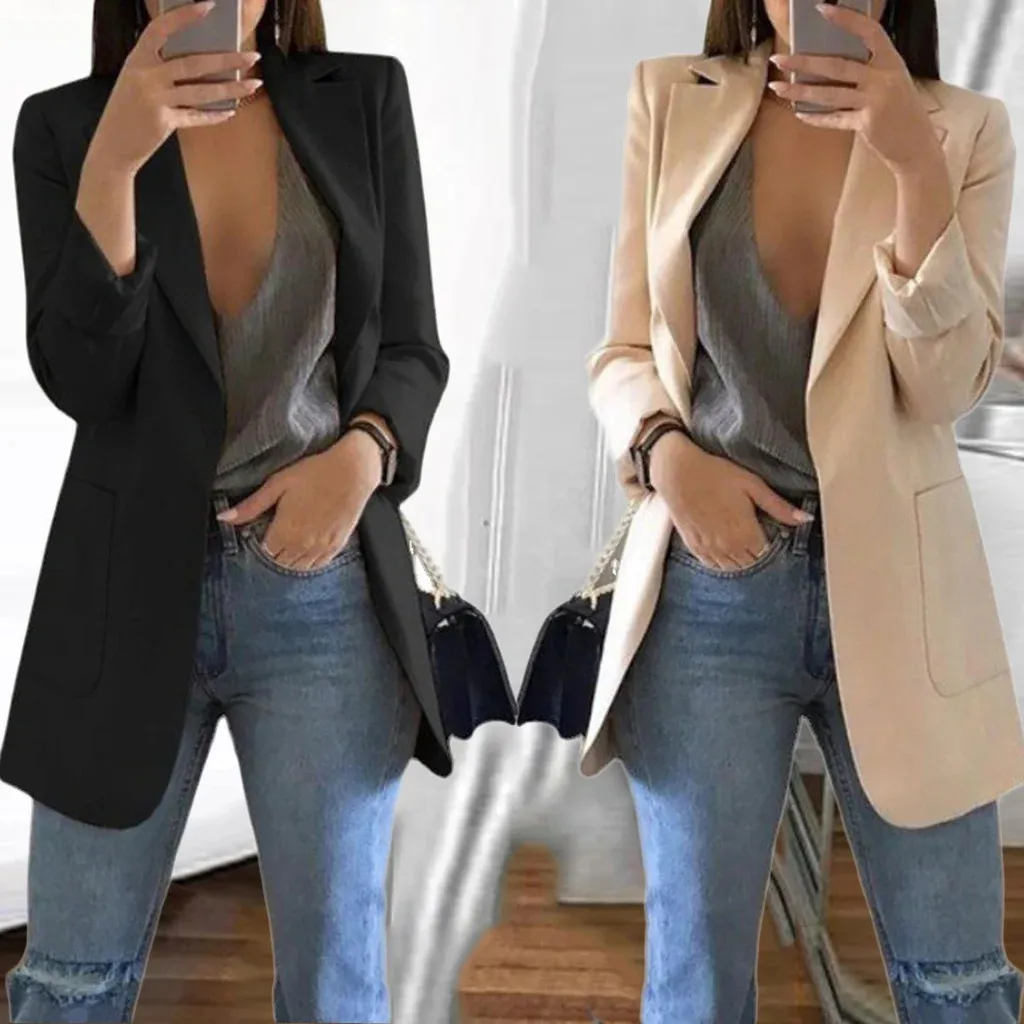 Suchst du einen Blazer, der sowohl im Büro als auch in der Freizeit super aussieht? Dieser elegante Blazer für Damen in großen Größen ist genau das Richtige! Hergestellt aus weichem, atmungsaktivem und leichtem Stoff, kannst du ihn das ganze Jahr über tragen. Das klassische Design mit Spitzenkragen und Langarm betont deine Schultern und verleiht dir einen trendigen Look. Ohne Stretch-Material, aber mit praktischen Seitentaschen. Erhältlich in vielen Größen von S (Brust 99cm) bis XXXXXL (Brust 134cm) - da findet wirklich jede die passende Größe! Perfekt fürs Büro, Arbeit, Ausgehen, Partys oder als lässige Alltagskleidung. Kombiniere ihn einfach mit einer Bluse oder einem Kleid und du bist perfekt angezogen. Die Pflege ist super einfach: Maschinenwäsche oder Handwäsche mit kaltem Wasser und sanfter Seife, Trockner geeignet und kein Bleichmittel nötig. Ein echter Allrounder, der in deinem Kleiderschrank nicht fehlen sollte!