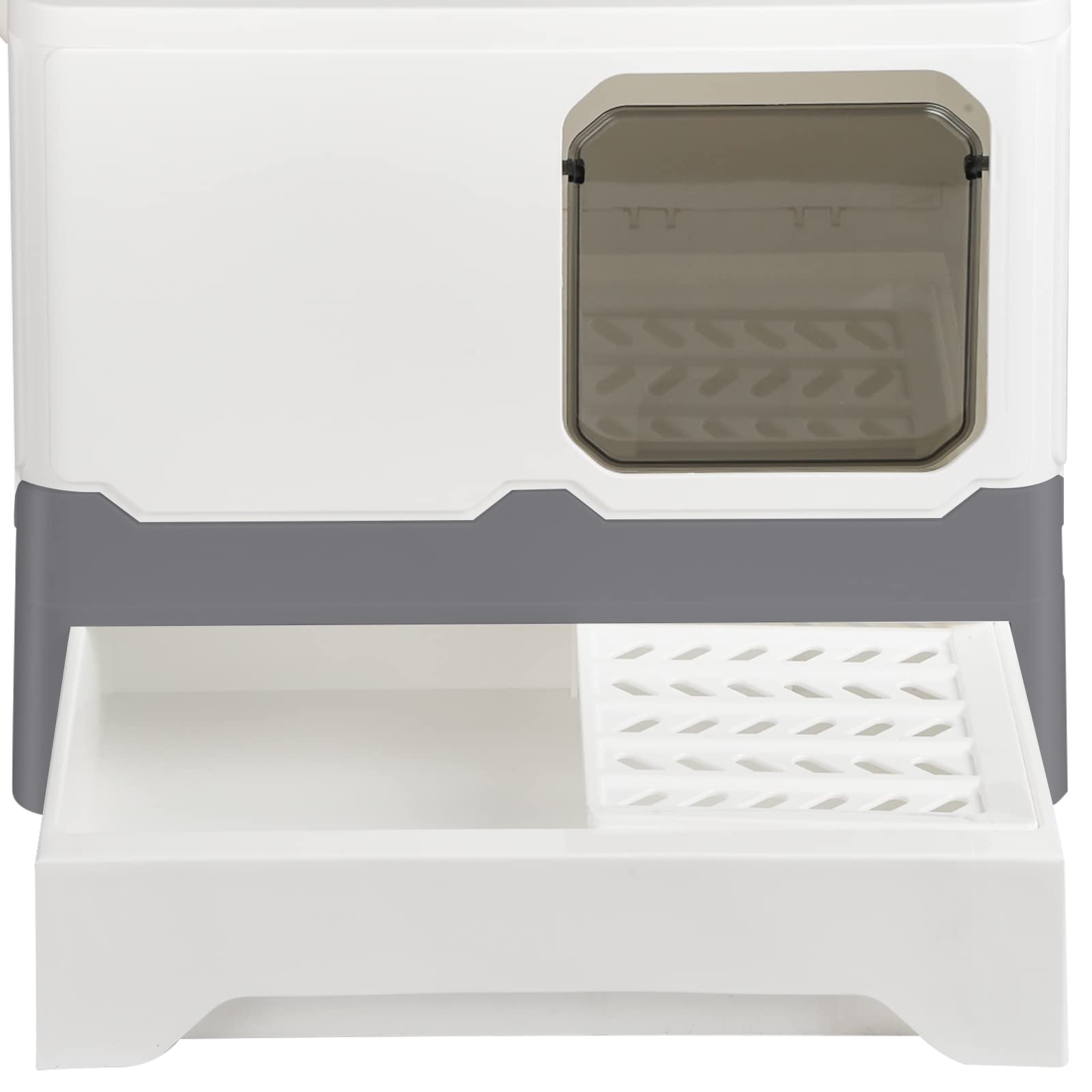 Geschlossenes Design hält Gerüche zuverlässig drin und verhindert, dass Streu rausfliegt. Deine Katze hat trotzdem zwei Zugänge: Vorne und oben. Aus robustem PP-Material, leicht zu reinigen.
