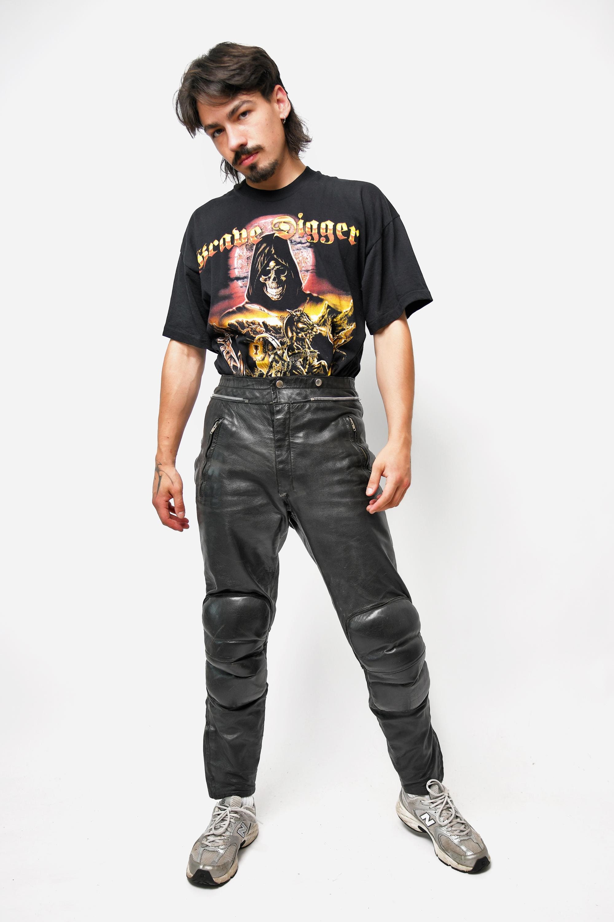 Style mit Attitüde! Diese Lederhose für Herren im klassischen Vintage-Design ist perfekt für Biker, Rock-Fans und alle, die einen lässigen Look lieben. Hergestellt aus hochwertigem PU-Leder, sieht sie aus wie echt, ist aber pflegeleichter. Mit vielen praktischen Taschen und Reißverschlüssen bietet sie genug Stauraum für alles Wichtige. Erhältlich in großen Größen für eine perfekte Passform. Der regelmäßige Schnitt sitzt bequem und ist ideal für Freizeit, Konzerte oder Motorradtouren. Ob zu Boots, Sneakern oder Stiefeln - diese Hose macht immer eine gute Figur. Ein Must-have für jeden, der den Rock-, Hip-Hop- oder Biker-Style liebt! Einfach zu kombinieren und ein echter Hingucker in deinem Kleiderschrank.