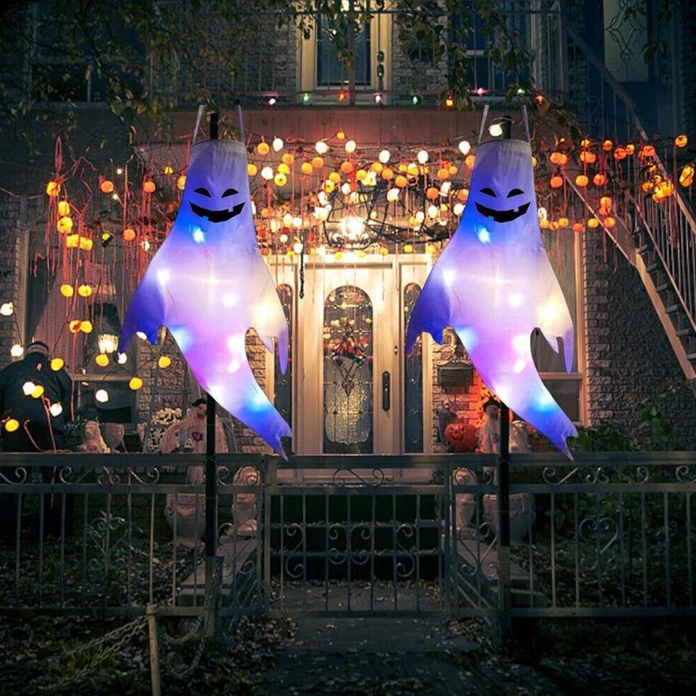 Bereit für mega-gruseligen Halloween-Spaß? Dieser riesige LED-Geist ist der absolute Hingucker für deine Halloween-Deko! Mit stolzen 4 Metern Höhe (einstellbar auf 1,5m) schwebt er gruselig realistisch in deinem Garten oder an der Veranda. Das schwere Stoffmaterial bewegt sich super natürlich im Wind - als würde der Geist wirklich schweben! Die LED-Beleuchtung mit 8 verschiedenen Modi sorgt für perfekte Grusel-Atmosphäre. Die Fernbedienung macht's besonders praktisch: Timer-Funktion (6h an, 18h aus) und du kannst die Beleuchtungsmodi bequem aus der Distanz wechseln. Der Aufbau ist super einfach - in nur 10 Minuten steht der Geist bereit, um deine Nachbarn zu erschrecken und Passanten zum Staunen zu bringen. Perfekt für Bäume, Vorgärten oder Hausfassaden. Die Batterien (3x AA) sind nicht im Lieferumfang, aber das ist ja schnell besorgt. Mach dein Zuhause zur gruseligsten Adresse der Nachbarschaft - dieser Geist garantiert Gänsehaut-Feeling!