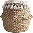 Groust Seegras Korb Geflochten - Makramee Aufbewahrungskorb 32x32x28cm
