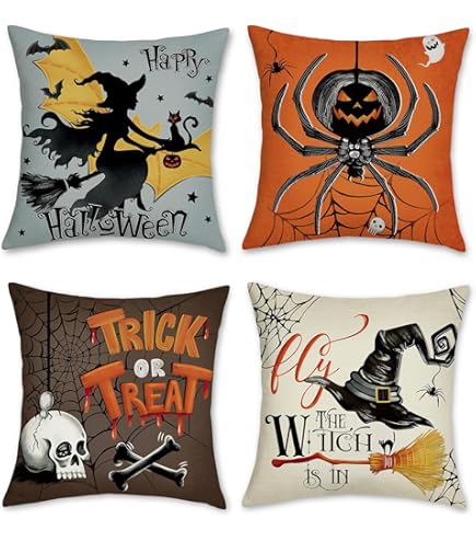 Mach dein Zuhause zur Halloween-Party-Zone! Dieses 4er-Set Kissenbezüge bringt sofort gruselige Stimmung in dein Wohnzimmer. Mit verschiedenen Motiven wie Kürbissen, Krähen, Vogelscheuchen und Schädeln ist für jeden Grusel-Fan etwas dabei. Aus hochwertigem Leinenstoff gefertigt, sind die Bezüge robust und reißen nicht so schnell. Der unsichtbare Reißverschluss macht das Überziehen der Kissen super einfach und sieht dabei noch stylisch aus. Perfekt für Couch, Bett oder Sessel - ob im Innen- oder Außenbereich. Verwandele deine Wohnung in eine schaurig-schöne Halloween-Location und beeindrucke deine Gäste. Die 40x40 cm Größe passt zu den meisten Standardkissen. Einfach die Kissenbezüge wechseln und schon ist die Halloween-Stimmung da!