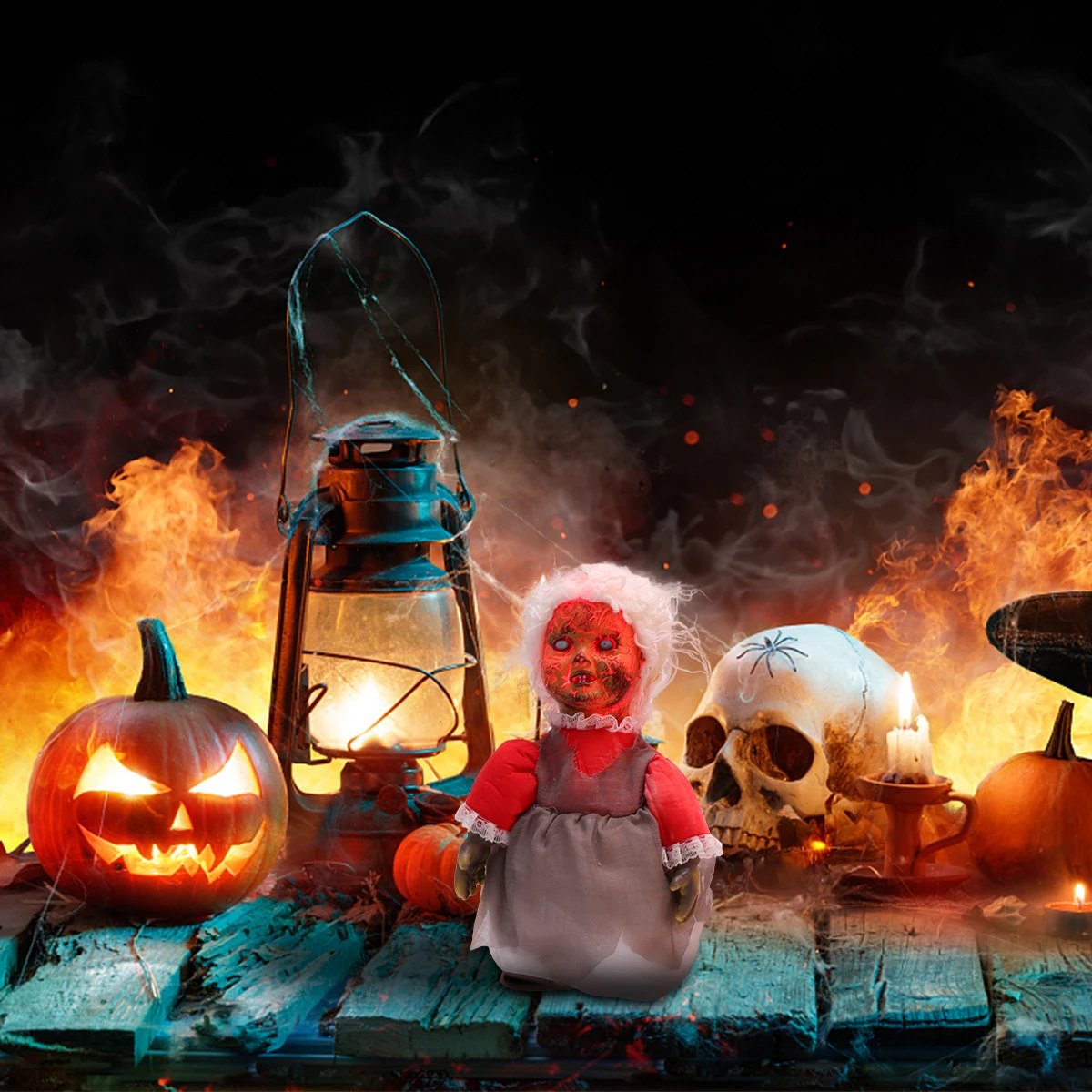 • Gruselige Puppe Mit Sound & Licht - Stimmaktiviert Für Halloween