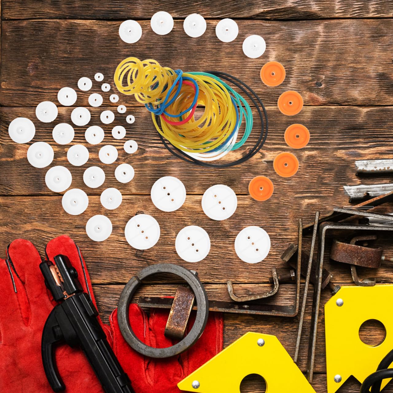 Für alle Tüftler und Bastelfans! Dieses 40-teilige Set mit Umlenkrollen, Gummibändern und Riemenscheiben ist perfekt für deine nächsten DIY-Projekte. Ob du Modellautos baust, Spielzeug konstruierst oder mechanische Experimente machst - hier findest du alles, was du brauchst. 🔧\n\nDie Riemenscheiben aus Kunststoff haben einen Durchmesser von 2,5 cm und arbeiten super leise mit den Gummibändern zusammen. Das Beste: Die Teile sind einfach zu montieren und wieder zu entfernen - ideal für verschiedene Projekte. Der Gummiband-Antrieb ist effizient und langlebig, genau das Richtige für Bildungsprojekte oder Hobby-Bastler.\n\nIm Set sind 40 Riemenscheiben, 40 Bankbänke und 4 Übertragungsbänder enthalten. Damit kannst du richtig kreativ werden und funktionale Modelle bauen, die nicht nur gut aussehen, sondern auch tatsächlich funktionieren. Viel Spaß beim Konstruieren!