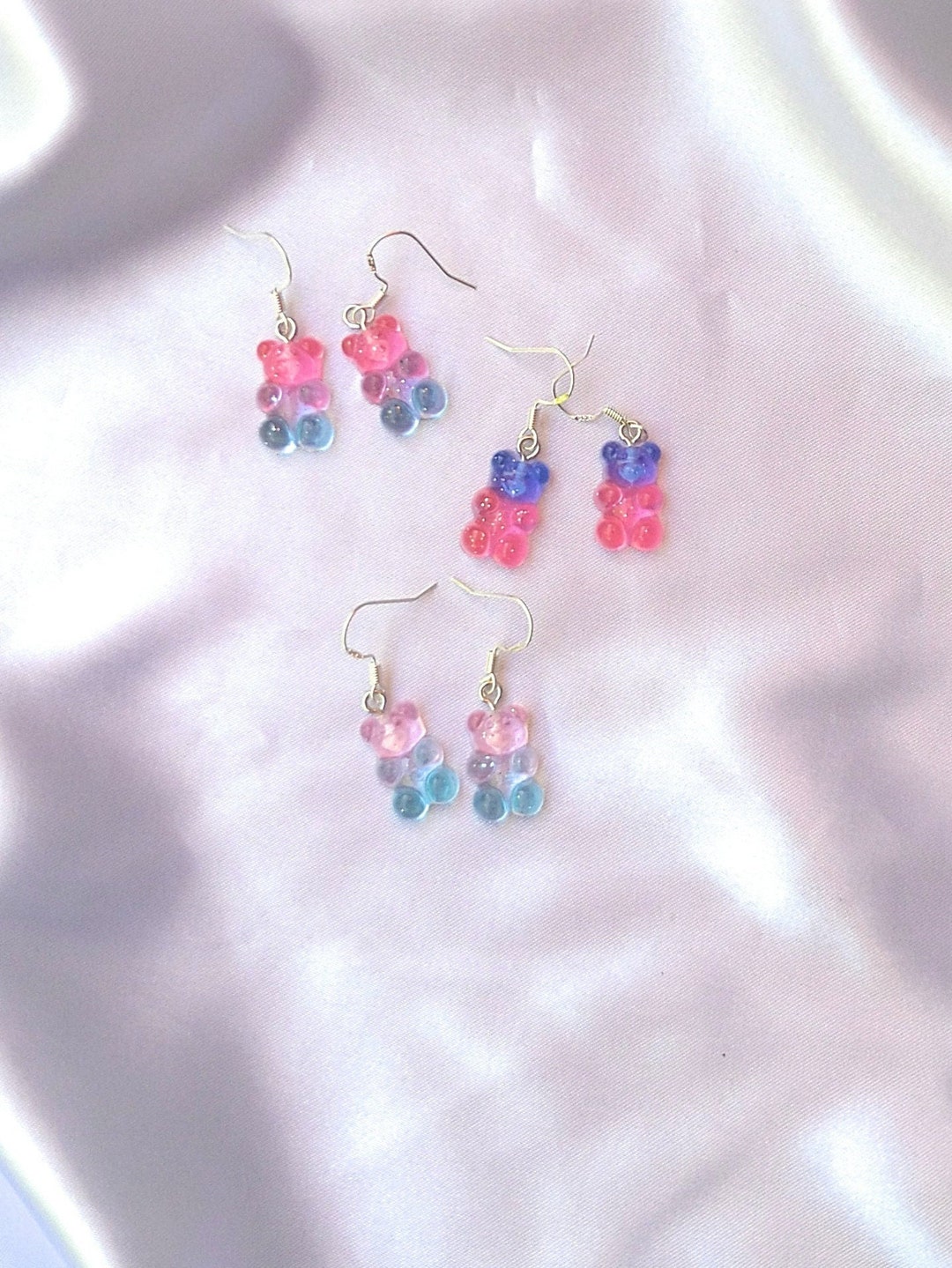 Wie niedlich sind denn diese Gummibär-Ohrringe? Mit kleinen Teddybär-Anhängern in hellgrün - einfach zum Knuddeln! Die Ohrringe sind etwa 3,7cm hoch, die Bärchen alleine 2cm. Die Haken sind aus Edelstahl, die Anhänger aus Kunststoff. Handgefertigt in Deutschland, versteht sich! Dazu gibt's zwei Kunststoff-Stopper für sicheren Halt. Perfekt für Partys, Geburtstage oder einfach für den Alltag - damit bist du garantiert der Hingucker. Ein super Geschenk für alle, die's süß und verspielt mögen!