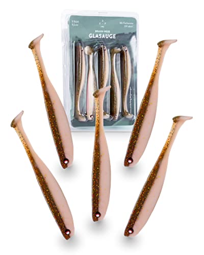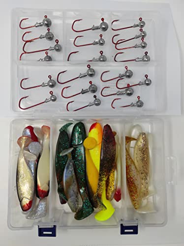 Die Köder sind ca. 11 cm lang - perfekt für große Barsche, Zander und Hechte. Die spezielle Form mit den 7 Einkerbungen an der Schwanzwurzel und dem Tellerschwanz macht irre Bewegungen unter Wasser.