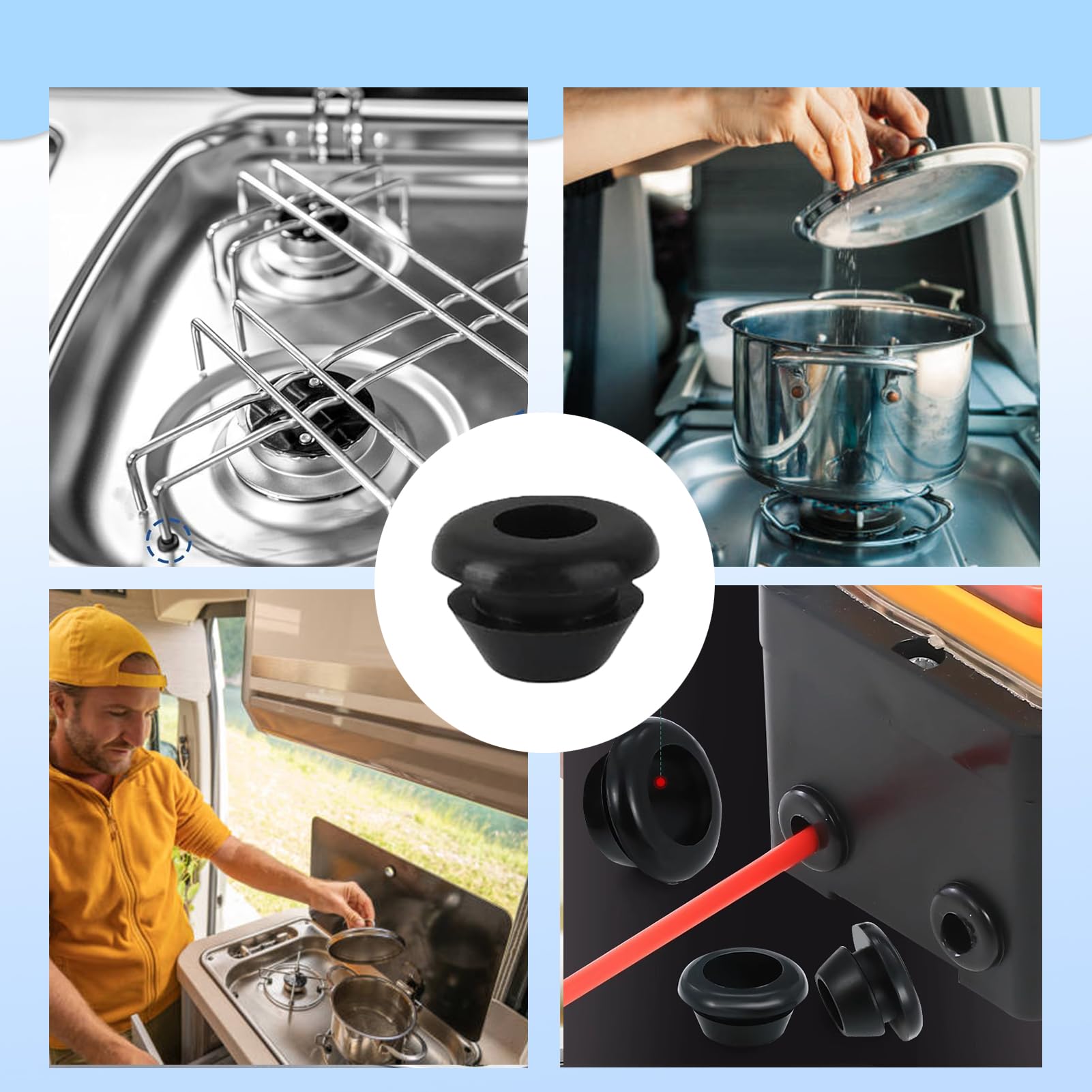 Schluss mit klappernden Töpfen im Wohnmobil! Diese hochwertigen Topfträger-Gummis bringen wieder Ruhe an dein Kochfeld. Speziell entwickelt für Kochfelder von Dometic, Smev und Thetford mit 5mm Stangen - passgenau als Ersatz für abgenutzte Originalteile. Aus hitzebeständigem Silikon bis 260°C, das auch bei starker Hitze nicht schmilzt oder riecht. Die 8 Gummis im Set reichen für mehrere Kochfelder oder als Reserve. Einfache Montage: Alte Gummis abziehen, neue aufstecken - fertig! Die spezielle Form sorgt für stabilen Halt deiner Töpfe und Pfannen, ohne zu verrutschen. Neben besserem Halt reduzieren sie auch störende Geräusche während der Fahrt. Korrosionsbeständig und extrem langlebig - perfekt für den Dauereinsatz im Wohnmobil oder Campingbus. Schützt zudem dein Kochfeld vor Verschleiß und Kratzern. Achtung: Nur die Gummis sind enthalten, nicht die kompletten Topfträger. Ein kleines Teil mit großer Wirkung für mehr Komfort unterwegs!