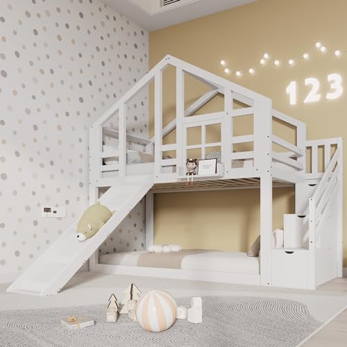 Traumhaftes Kinderzimmer gefällig? Dieses Gxffipw Hochbett in creme ist der absolute Hit! Mit 90x200 cm Standardmaß und cooller Rutsche wird jeder Tag zum Abenteuer. Drei große Schubladen bieten Stauraum für Spielzeug, Bücher und Klamotten - endlich Ordnung im Kinderzimmer! Der Rausfallschutz an den Seiten sorgt für absolute Sicherheit. Aus Massivholz und MDF gebaut - super stabil und langlebig. Keine Federkernmatratze nötig, einfach die Matratze direkt aufs Lattenrost legen. Modernes, schlichtes Design passt in jedes Zimmer. Achtung: Wird in 3 Paketen geliefert die nicht immer gleichzeitig ankommen. Montage ist aber easy mit der Anleitung. Dein Kind wird dieses Traumbett lieben!