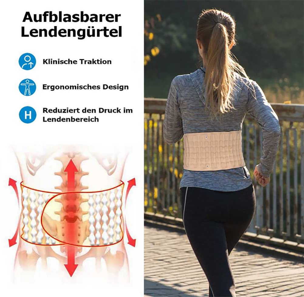 Einfach zu bedienen: Gürtel anlegen, mit der Handpumpe aufblasen bis es leicht knackt (das ist normal!), und schon wirkt die Entlastung. Verbessert die Körperhaltung und richtet die Wirbelsäule wieder richtig aus.
