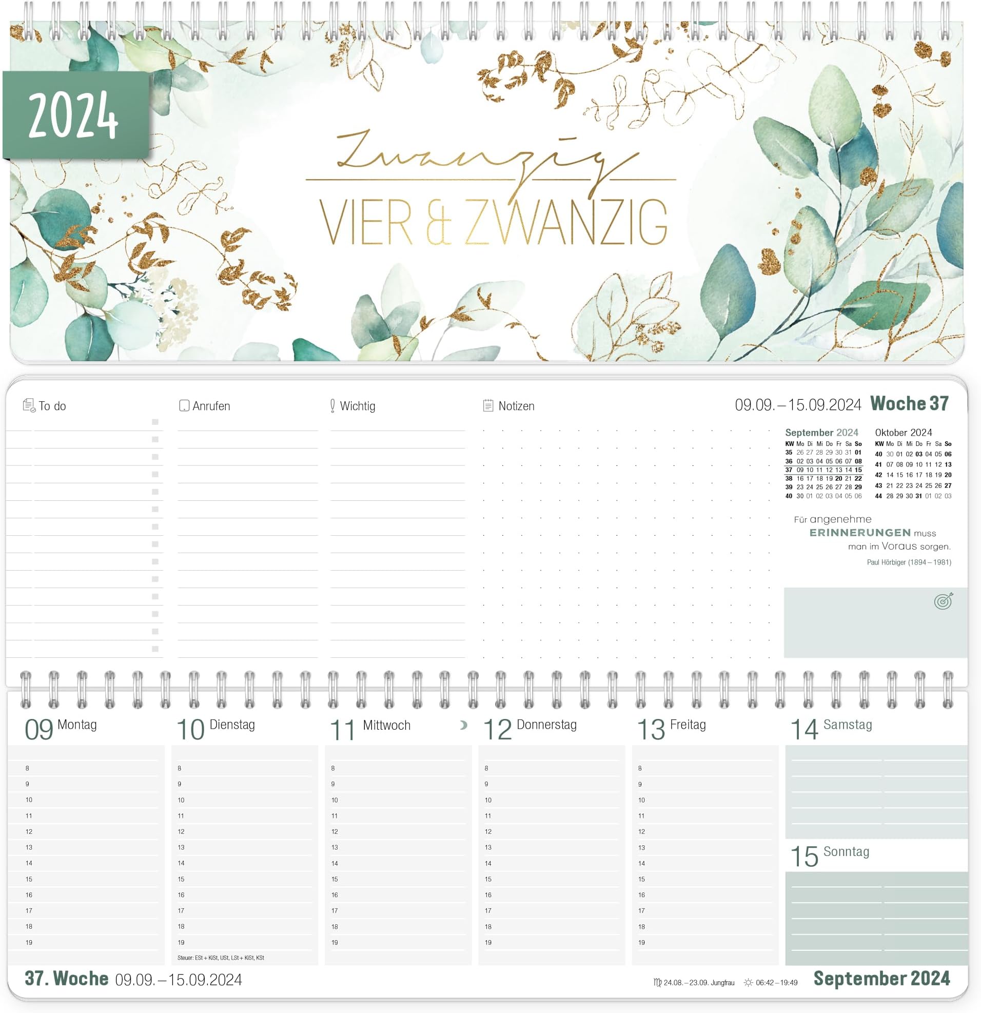 Mensch, dieser Häfft Tischkalender für 2026 ist ja mal richtig praktisch für alle Vielplaner! Mit süßem Flower-Design und nem Format von 29,8x11,6cm - passt super auf jeden Schreibtisch. Das Wochenkalendarium zeigt jede Woche auf zwei Seiten - voll viel Platz für Termine, Notizen und To-dos. Mehrsprachig auf Englisch, Französisch, Italienisch und Spanisch - perfekt für internationale Kontakte. Mit Jahresübersichten für 2026 und 2027, Monatsübersichten auf jedem Blatt und extra Seiten für Adressen und Urlaubsplanung. Aus FSC-zertifiziertem Papier - voll nachhaltig und klimafreundlich. Die Wire-O-Bindung macht das Umblättern super easy und das stabile Cover mit abgerundeten Ecken hält was aus. Ob im Homeoffice, Büro oder Studentenzimmer - mit dem Kalender behältst du immer den Überblick. Einfach bestellen und organisiert ins neue Jahr starten!