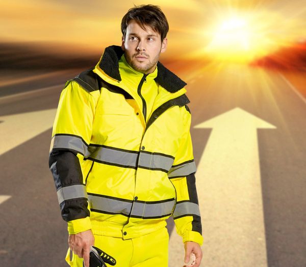 Sichtbar sicher bei jedem Wetter! Diese Högert Warnschutzjacke in knalligem Gelb hält dich nicht nur warm, sondern macht dich auch bei schlechter Sicht unübersehbar. Nach EN ISO 20471 Klasse 2 zertifiziert - perfekt für Straßenbau, Flughäfen, Häfen und andere Arbeitsplätze mit Sichtbarkeitspflicht. Wasserdicht bis 2000 mm H2O und mit versiegelten Nähten - da kann Regen kommen! Die praktische Kapuze und der hohe Kragen schützen vor Wind und Wetter. Vier Taschen bieten reichlich Stauraum für Werkzeug und persönliche Sachen. Der 2-Wege-Reißverschluss ist super praktisch, Kinnschutz sorgt für Komfort. Aus robustem Polyester Oxford 300D mit PU-Beschichtung - hält auch harte Arbeit aus. Mit reflektierenden Streifen an Schultern, Ärmeln und Rumpf. Für Herbst und Winter genau das Richtige! 👷♂️🌧️🛡️
