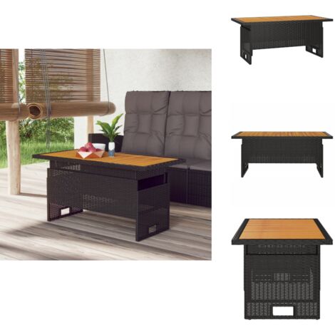 Rantry Gartentisch Höhenverstellbar | Akazienholz & Poly Rattan In Schwarz | 100x50x43/63 Cm Terrassentisch