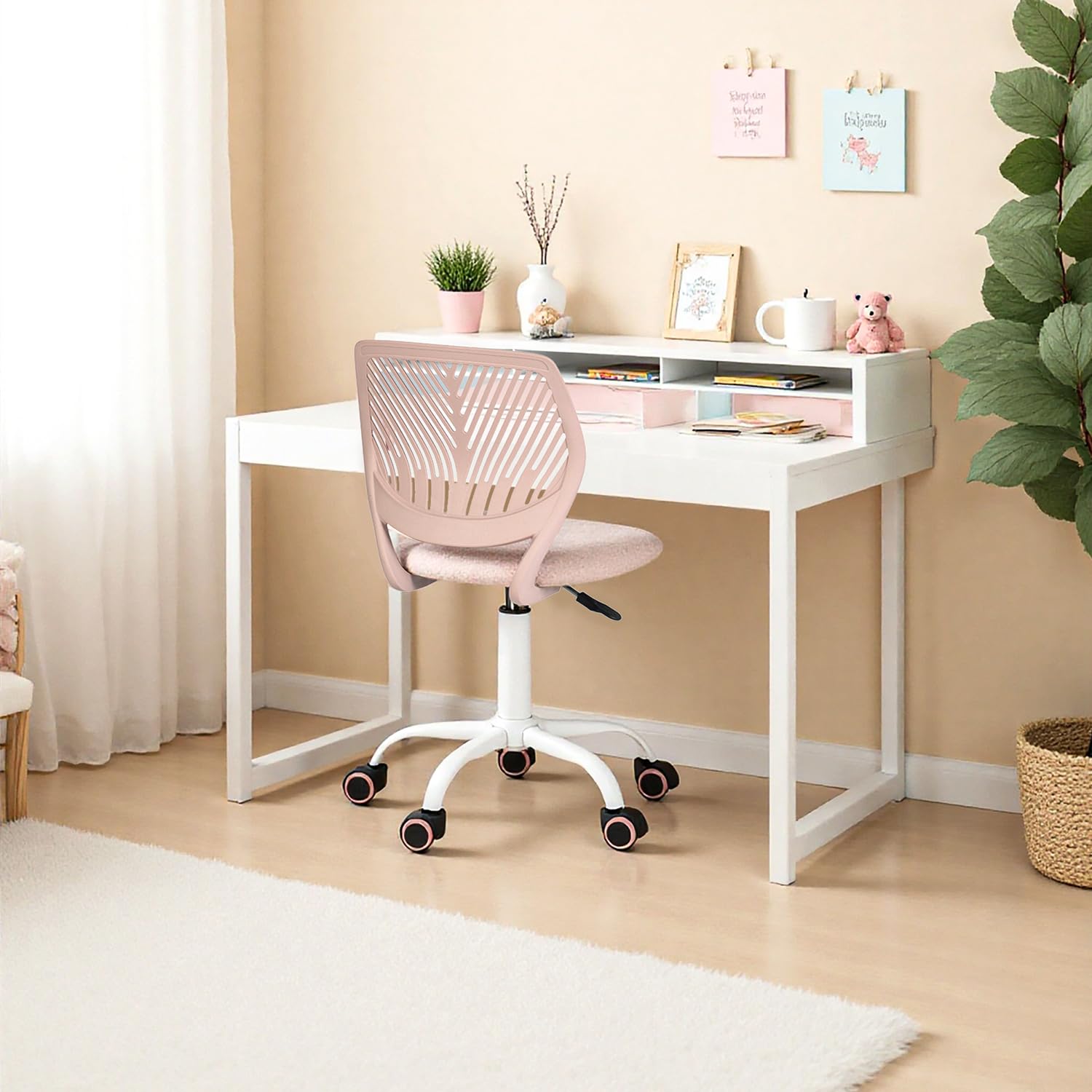 Der perfekte Stuhl für dein Schulkind! Dieser höhenverstellbare Drehstuhl von FurnitureR wächst mit deinem Kind mit und sorgt für eine gesunde Sitzhaltung. Die besondere Rückenlehne mit Loch-Design ist nicht nur stylisch, sondern auch atmungsaktiv - ideal für lange Hausaufgaben-Sessions. Der drehbare Sockel macht das Hinsetzen und Aufstehen super einfach und bringt sogar noch Spaß beim Lernen. In mehreren Farben erhältlich - hier im modernen Molandi Beige. Perfekt fürs Kinderzimmer, Homeoffice oder Lernbereich. Ob für Hausaufgaben, Basteln oder Gaming - dieser Stuhl fördert die Konzentration und sorgt für bequemes Sitzen. Ein Muss für jedes Schulkind!
