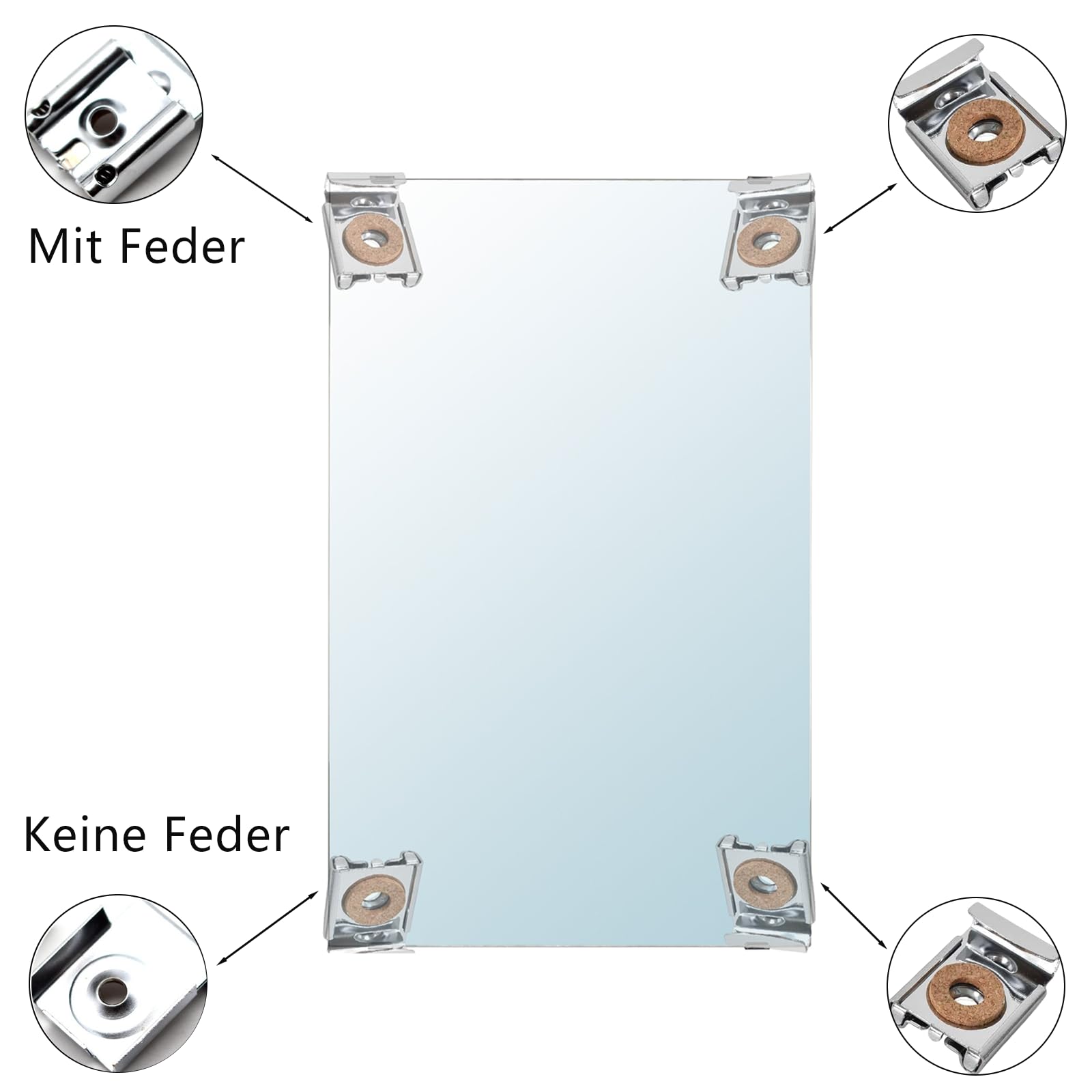 Hey, wenn du einen schweren Spiegel sicher an der Wand befestigen willst, bist du hier genau richtig! 😊 Dieses Set mit 12 Spiegelhalterungen macht die Montage zum Kinderspiel. Die Halterungen sind aus robustem, korrosionsbeständigem Material und haben einen verdickten Anti-Rutsch-Kork, der dein Spiegelglas optimal schützt. Das geniale Federclip-Design ermöglicht ein einfaches Einsetzen und Entfernen des Spiegels - einfach den Spiegel in den oberen Clip setzen, Feder ziehen und in den unteren Clip einhaken. Die unteren Clips tragen das ganze Gewicht, sodass dein Spiegel bombenfest an der Wand hängt. Perfekt für rahmenlose Spiegel im Bad oder Zimmer, aber auch super für Bilder, Gemälde oder Fotos. Mit den mitgelieferten schweren Dübeln und Schrauben hast du alles, was du für eine sichere Montage brauchst. Nie wieder wackelige Spiegel - mit diesen Halterungen sitzt alles perfekt!