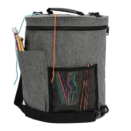 Strickst oder häkelst du gerne unterwegs? Diese praktische Garntasche aus robustem Segeltuch ist dein perfekter Begleiter! Mit 30,5 cm Höhe und 20,3 cm Durchmesser bietet sie genug Platz für 6-8 Garnknäuel und dein Strickzeug.\n\nDer Kordelzug-Verschluss sorgt dafür, dass nichts herausfällt, und die seitlichen Löcher lassen das Garn bequem nach außen laufen - ohne lästiges Verheddern. Innen findest du zusätzliche Taschen für Nadeln, Scheren oder andere Utensilien.\n\nPerfekt für unterwegs: ob im Park, im Zug oder auf Reisen. Leicht, stabil und platzsparend - so kannst du dein Hobby überall genießen. Ein tolles Geschenk für alle Strick- und Häkelfans!
