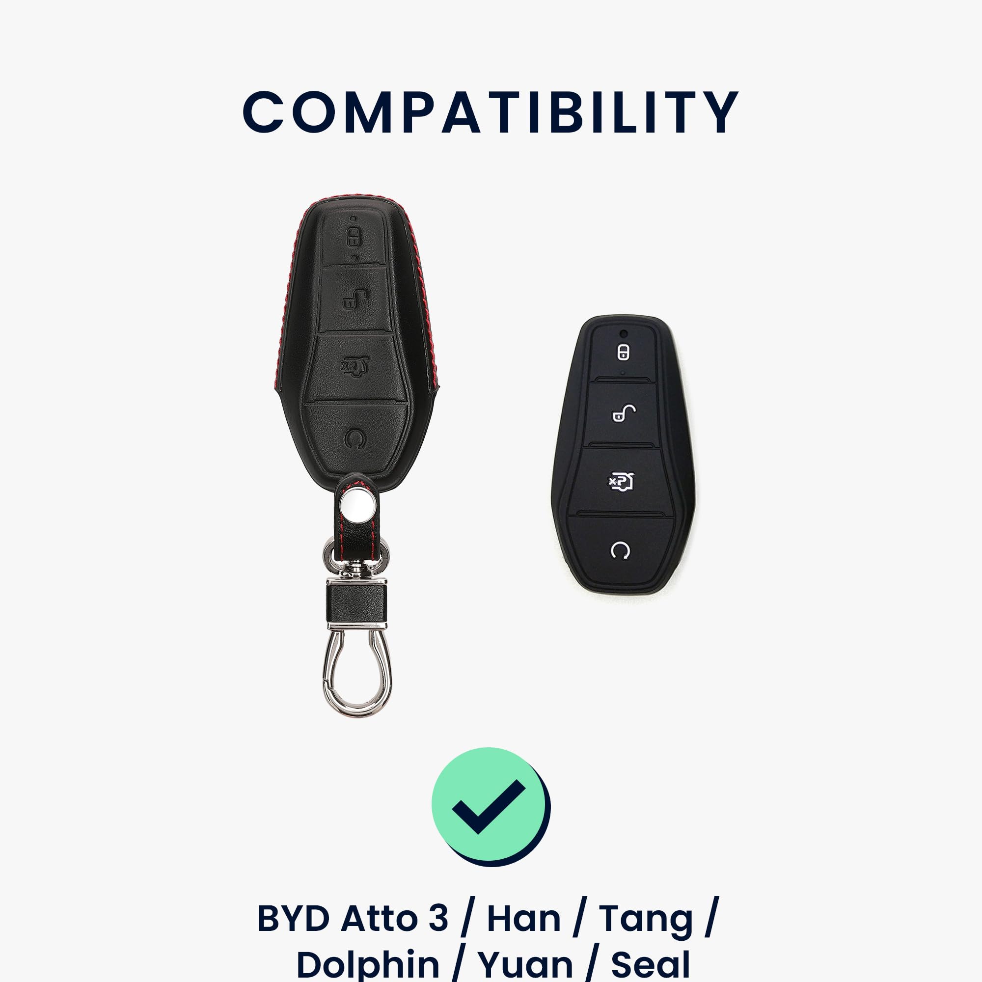 Schütz deinen BYD-Autoschlüssel mit dieser stylischen Hülle von kwmobile! Passt perfekt für Atto 3, Sealion, Han, Tang, Dolphin und Seal - also so ziemlich alle aktuellen BYD-Modelle. Aus robustem Kunstleder gefertigt, schützt die Hülle zuverlässig vor Kratzern, Schmutz und Abnutzung. Die strukturierte Oberfläche liegt super angenehm in der Hand und gibt guten Grip. Das Beste: Alle Tasten lassen sich trotz Hülle problemlos bedienen - kein lästiges Auspacken mehr! In Marineblau und Hellbraun erhältlich, sieht die Hülle nicht nur gut aus, sondern ist auch ein absolutes Leichtgewicht. Einfach aufstecken und dein Schlüssel ist rundum geschützt. Praktischer geht's kaum! Auch ein super Geschenk für alle BYD-Fahrer in deinem Umfeld. Einfach bestellen und dein Schlüssel hat den perfekten Schutz!