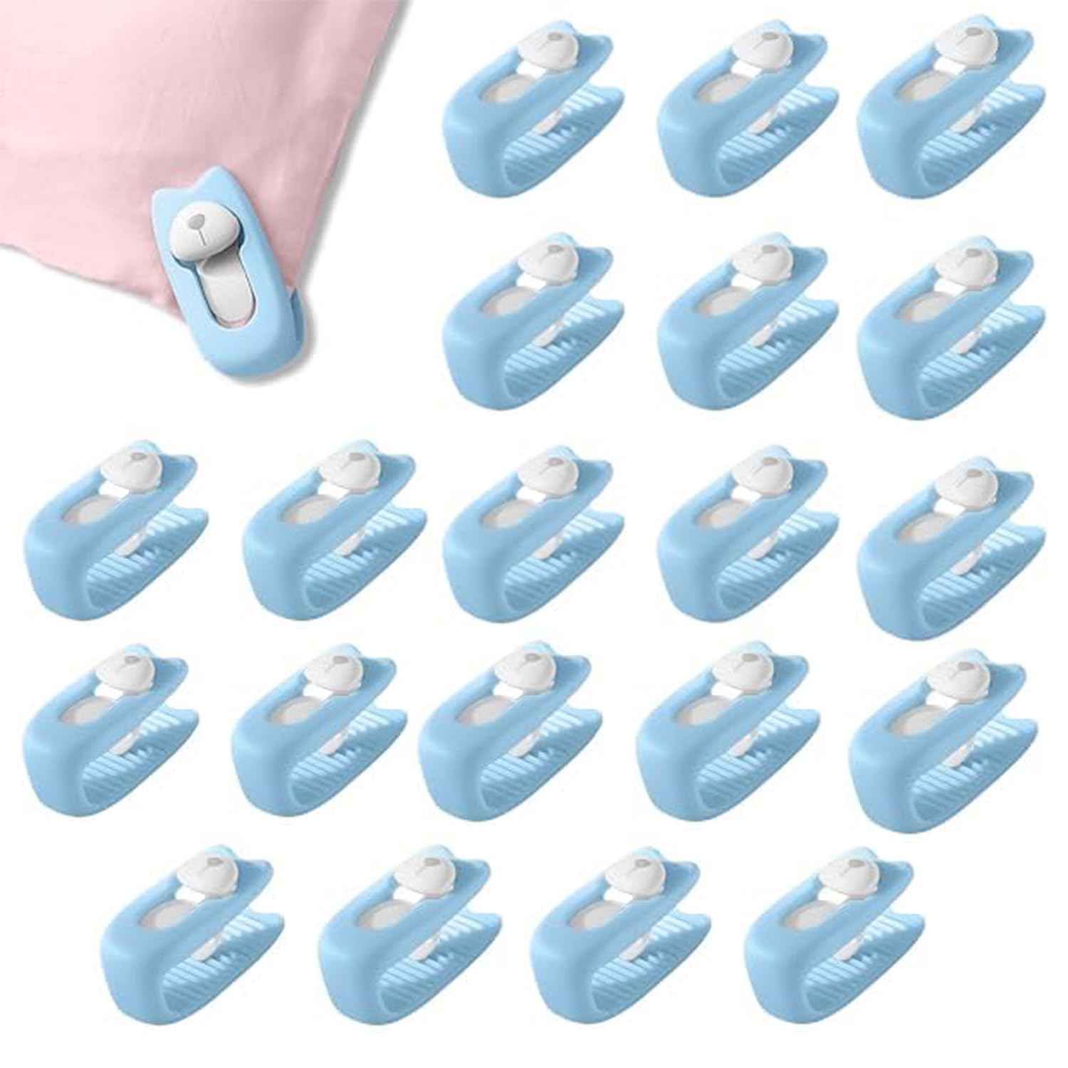 Hey, diese Bettdecken-Clips sind die Rettung für jeden, dessen Bettdecke immer verrutscht! 20 transparente Clips im Set - mehr als genug für alle Ecken. Maße: 3,5 x 3,2 cm - die perfekte Größe für Bettdecken. Aus BPA-freiem Polypropylen - absolut ungiftig und lebensmittelecht. Keine Nadeln oder Metallteile - nichts, was dich verletzen oder die Bettwäsche beschädigen könnte. Super einfach zu verwenden: Einfach Bettbezug und Decke zusammenstecken - fertig! Hält auch bei unruhigen Schläfern bombenfest. Getestet für über 5000 Anwendungen - die halten ewig! Auch nach dem Waschen der Bettwäsche bleiben sie intakt. Transparent - fallen kaum auf und stören das Design der Bettwäsche nicht. Endlich schläfst du wieder unter einer ordentlichen Decke - ohne lästiges Zurechtzupfen!