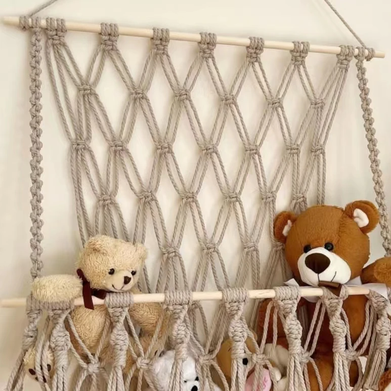 Endlich Ordnung im Kinderzimmer! Diese süße Makramee-Hängematte von Opilroyn ist die perfekte Lösung für all die Kuscheltiere, die sich überall tummeln. Mit den Maßen 100x60cm (ausgebreitet) bietet sie genug Platz für deine ganze Plüschtier-Sammlung. Aus robustem geflochtenem Baumwollseil gefertigt, ist sie super stabil und die kleinen Netzlöcher verhindern, dass sich Tierbeine verheddern. Aber sie ist nicht nur praktisch - das schöne Makramee-Design sieht auch noch total stylisch aus und verleiht jedem Raum einen gemütlichen, rustikalen Charme. Einfach in die Ecke hängen und schon haben die Kuscheltiere ihr eigenes gemütliches Reich. Perfekt fürs Kinderzimmer, Spielzimmer oder sogar das Badezimmer für Handtücher. So lernen Kinder spielerisch, ihr Zimmer aufzuräumen, und du gewinnst wertvollen Platz zurück. Ein echter Win-Win für Groß und Klein!