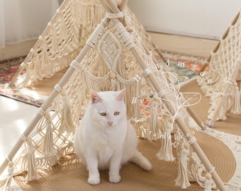 • TMAOZW Katzen Hängematte & Schaukel - Handgewebtes Rundes Katzennest 40cm Boho Style