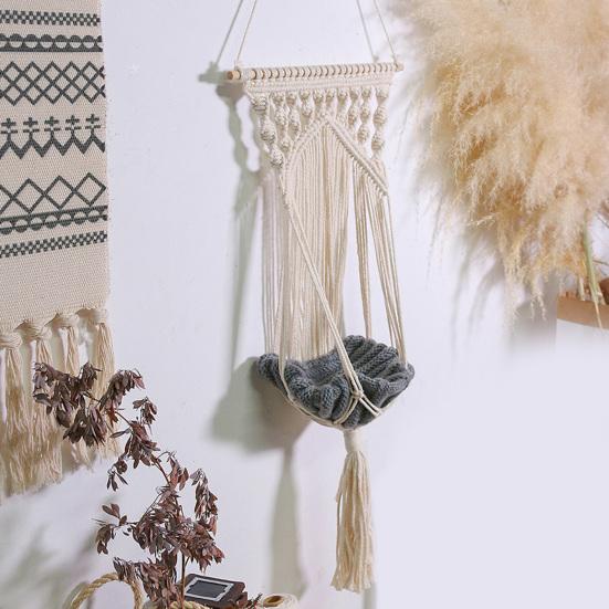 TMAOZW Katzen Hängematte & Schaukel - Handgewebtes Rundes Katzennest 40cm Boho Style