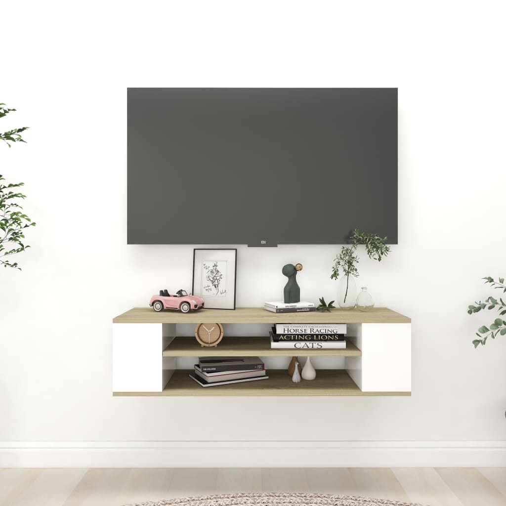 Wow, dieser vidaXL TV Wandschrank ist genau das Richtige wenn du Platz sparen willst! Mit 100cm Breite bietet er genug Platz für deinen Fernseher und die ganze Technik. Aus stabilem Holzwerkstoff in schicker Räuchereiche-Optik - sieht nicht nur gut aus, sondern ist auch feuchtigkeitsbeständig. Die zwei großen Fächer bieten reichlich Stauraum für Mediaplayer, Spielekonsolen, Zeitschriften oder Deko. Und das Beste: Er wird einfach an der Wand montiert und nimmt so keine wertvolle Bodenfläche ein. Die stabile Oberplatte ist perfekt für Bücher, Vasen oder andere Accessoires. Aber Achtung: Schrauben und Dübel sind nicht im Lieferumfang enthalten, also besorg dir passendes Material für deine Wand. Mit Montageanleitung ist der Aufbau aber echt einfach. Perfekt fürs Wohnzimmer, Schlafzimmer oder auch mal fürs Büro. Mach deine Technik unsichtbar und schaff dir mehr Platz - mit diesem Wandschrank wird's richtig ordentlich und stylisch!