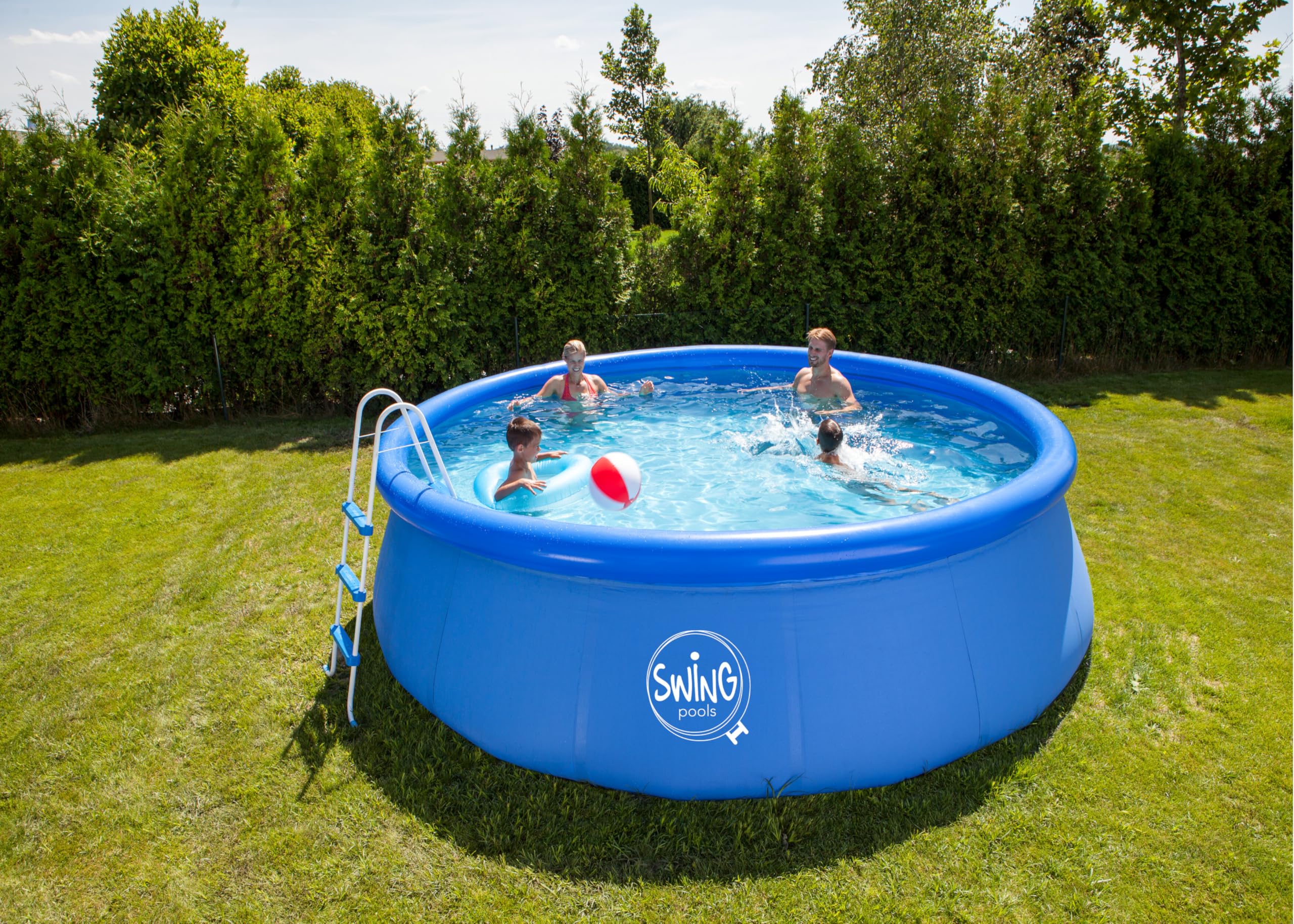 Alter, dieser Quick Up Pool ist genial! 305cm Durchmesser, 76cm hoch - da passt die ganze Familie rein. 3.800 Liter Wasserkapazität, also richtig viel Platz zum Plantschen. Der Aufbau ist mega einfach: Pool hinlegen, oberen Luftring aufpumpen, Wasser rein - und er richtet sich von alleine auf! Aus 3-lagigem PVC-Polyester, richtig stabil. Mit Ablassventil für einfaches Entleeren. Zwei Anschlüsse für Filterpumpen (32mm) - aber Achtung: Pumpe nicht im Lieferumfang! Perfekt für den Garten, Terrasse oder Balkon. Im Winter einfach Luft rauslassen, zusammenfalten und verstauen. Macht den Sommer noch cooler - ob für Kinder oder Erwachsene. Sommer, Sonne, Pool-Spaß - damit klappt's garantiert!
