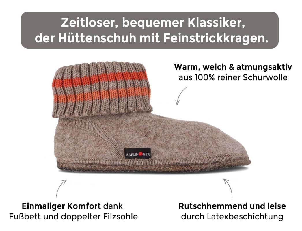 Boah, bei kalten Füßen sind diese HAFLINGER Hüttenschuhe einfach der Hammer! Der Paul ist aus reiner Schurwolle gefertigt - das Material ist super atmungsaktiv und sorgt für ein perfektes Fußklima. Die 10mm dicke Filzsohle mit Latexbeschichtung ist rutschfest und feuchtigkeitsabweisend. Egal ob du Größe 17 oder 50 brauchst - hier findet jeder den passenden Schuh. Perfekt für kalte Wintertage, wenn man es sich zu Hause gemütlich machen will. Die Wolle wärmt super, ohne dass die Füße schwitzen. Ob für Oma, Opa, Mama, Papa oder die Kinder - im Familien-Look macht das Tragen gleich doppelt Spaß. Einfach reinschlüpfen und wohlfühlen! Die Qualität von HAFLINGER ist legendär - die halten ewig und werden mit der Zeit immer bequemer. Absolute Empfehlung für alle, die es gemütlich lieben!