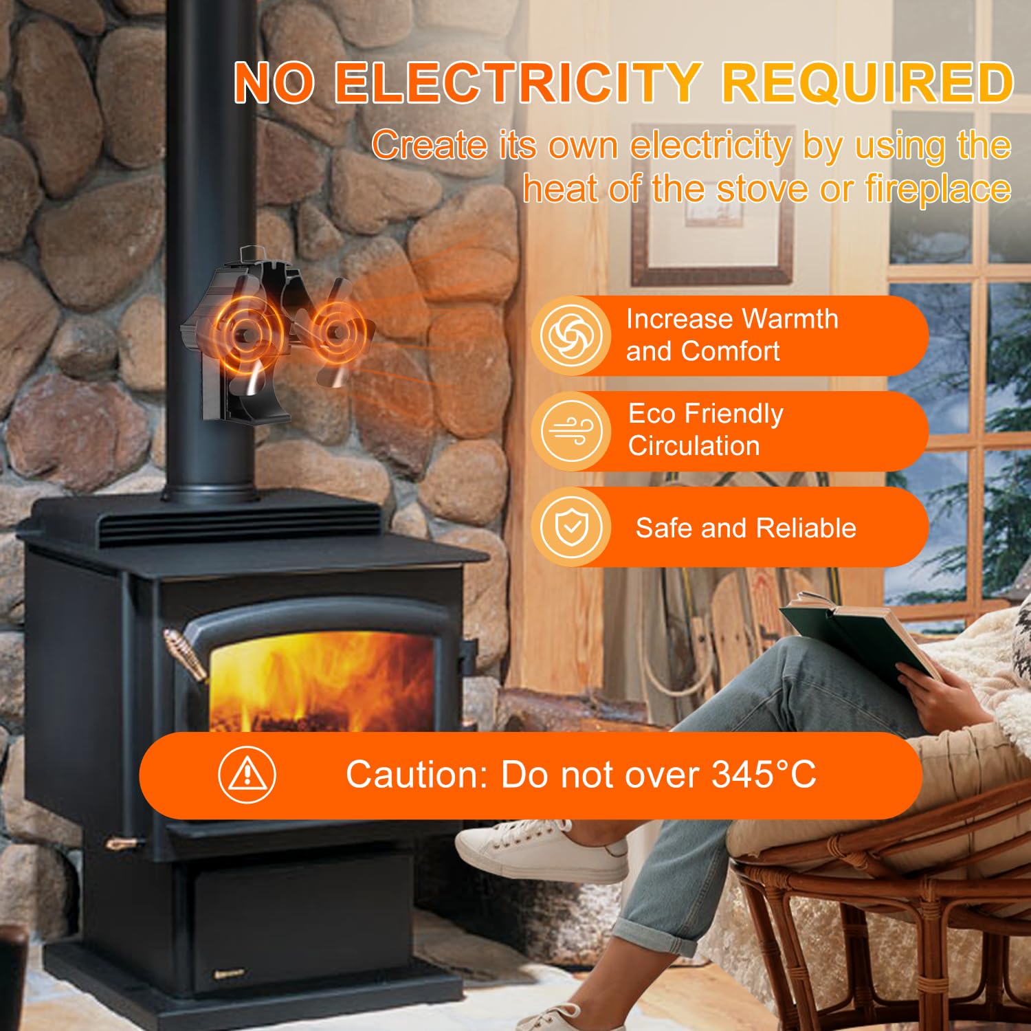 • HAWCAFU Mini Ofenventilator 5 Flügel - Wärmebetrieben Für Kamin Und Holzofen