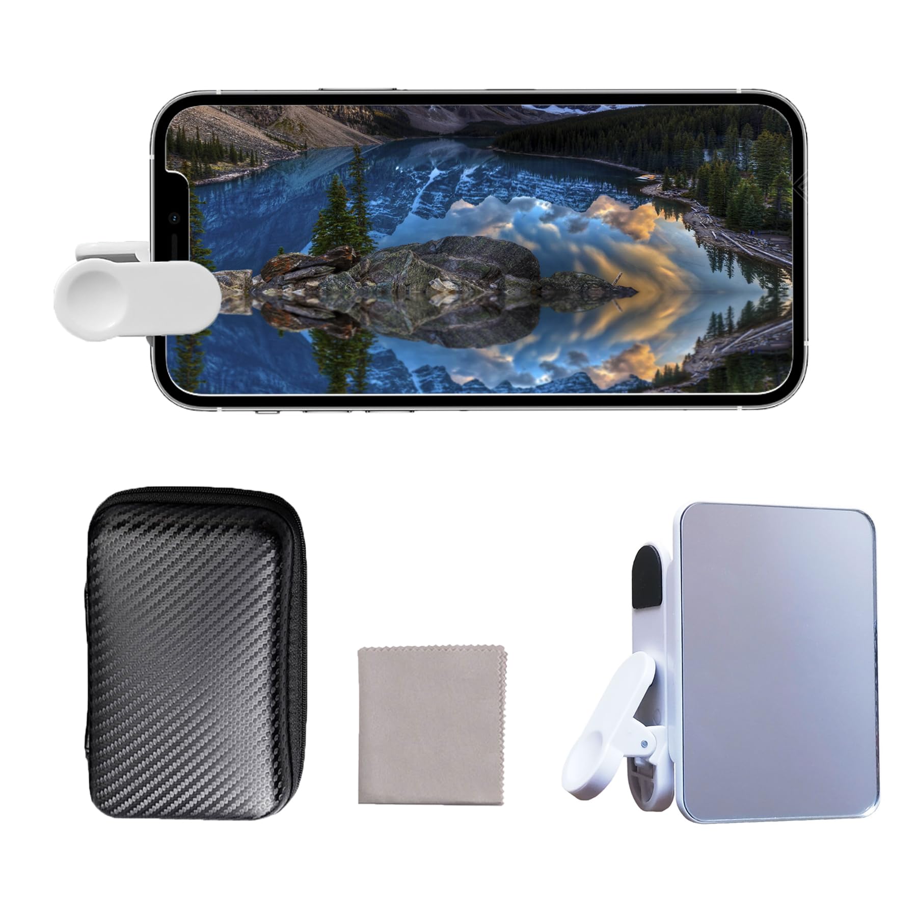 Coole Spiegel-Effekte für deine Fotos! Diese praktische Spiegel-Linse verwandelt dein Smartphone in eine kreative Spiegel-Kamera. Einfach mit der Federklammer an dein Handy clipen - in 3 Sekunden montiert. Aus Kunststoff und Glas für kristallklare, verzerrungsfreie Spiegelreflexionen. Der stabile Stand sorgt für rutschfeste Aufnahmen. Winkel beliebig einstellbar - vertikal, horizontal, gekippt. Perfekt für Reisefotos, Selfies, Produktfotografie und Social Media Content. Kompakt und leicht - passt in jede Tasche. Inklusive Aufbewahrungstasche zum Schutz. In Schwarz oder Weiß erhältlich. Mach aus gewöhnlichen Motiven augenfällige Kunstwerke! Ob für Hobby-Fotografen oder Content Creator - diese Linse eröffnet ganz neue kreative Möglichkeiten. Einfach zu bedienen und sofort einsatzbereit für einzigartige Spiegel-Effekte!