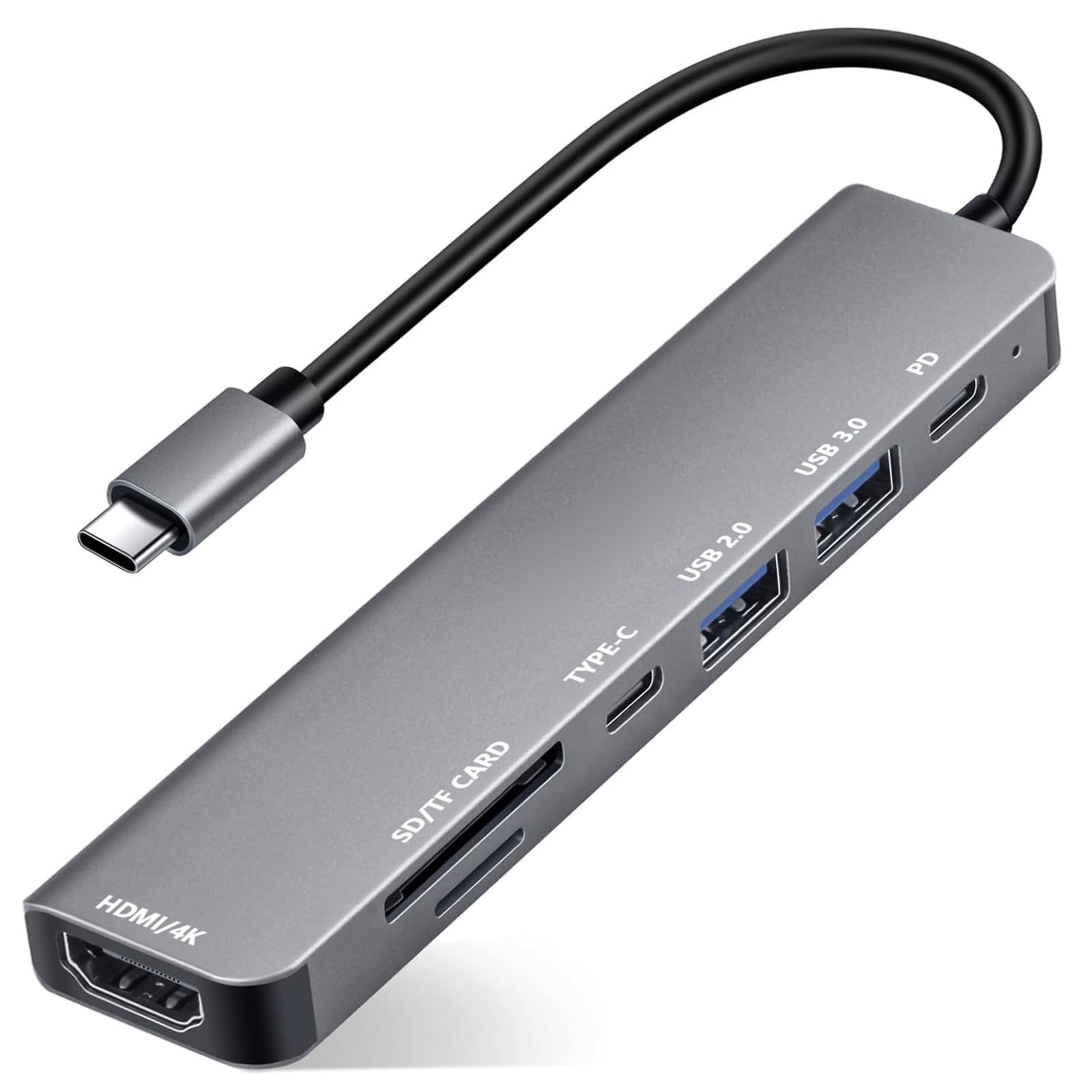 Verwandele deinen USB-C Port in 7 Anschlüsse! Dieser Hub bietet: HDMI 4K@30Hz, USB 3.0 (5Gbps), USB 2.0, USB-C Datenport, 100W Power Delivery, SD/TF Kartenleser. Perfekt für MacBook, iPad, iPhone 15/16, Dell XPS. Plug & Play - keine Treiber nötig! Aluminium-Gehäuse für optimale Wärmeableitung. Ideal für Home Office, Präsentationen oder unterwegs. Übertrage Fotos blitzschnell von der Kamera. Lad dein Gerät während der Nutzung. Kompatibel mit Windows, Mac, Android. Mach dein Setup komplett!