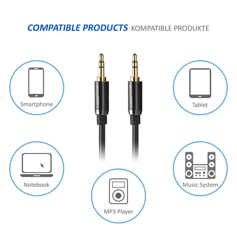 Einfach verbinden und loshören! Dieses hochwertige 3,5mm Klinkenkabel verbindet deine Geräte im Handumdrehen. Ob Smartphone mit Autoradio, Laptop mit Lautsprechern oder Kopfhörer mit TV - mit 0,5m Länge ist es perfekt für den täglichen Einsatz. Das ultraslimme Design und der Knickschutz an den Steckern garantieren lange Freude. Aus flexiblem PVC und in ansprechendem Weiß. Perfekt für iPhone, Samsung, MP3-Player und alle Geräte mit 3,5mm Klinkenanschluss. Dein universeller Audio-Helfer für zu Hause und unterwegs!
