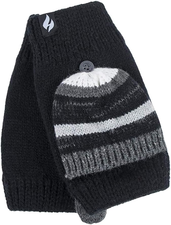 Friert du im Winter immer an den Händen? Diese Heat Holders Thermo-Handschuhe sind die Lösung! Sie sind fingerlos, haben aber praktische Fäustling-Kappen, die du bei Bedarf einfach überziehst. Aus superwarmem Heatweaver-Garn mit weichem Fleecefutter - richtig gemütlich! Mit 2,3 Tog sind sie viel wärmer als normale Handschuhe. Die ausziehbaren Manschetten schützen auch die Handgelenke. Perfekt für SMS tippen, Schlüssel suchen oder einfach nur warme Hände haben. In Einheitsgröße, Farbe Schwarz. Endlich warme Hände mit voller Fingerfertigkeit!