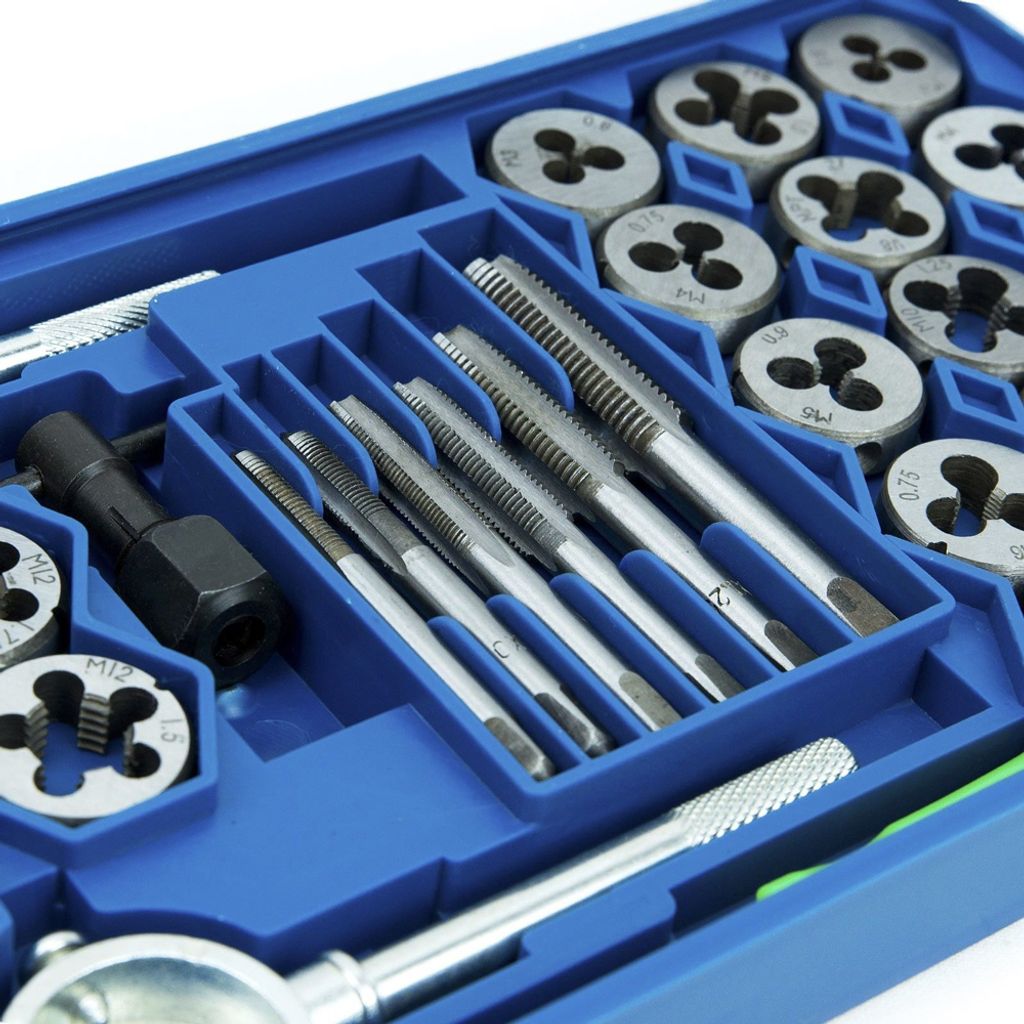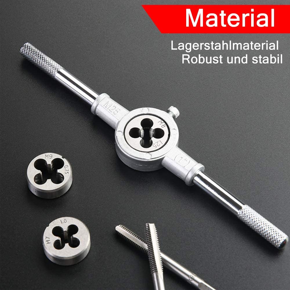 Für alle Heimwerker und Profis - dieser 40-teilige Gewindeschneidsatz von HENGMEI hat wirklich alles was du brauchst! Enthalten sind: verstellbares Windeisen, T-Windeisenhalter, Schneideisenhalter, Schraubendreher, Gewindeschablone plus 17 Gewindebohrer und 17 Schneideisen in den Größen M3x0,5 bis M12x1,75 und 1/8MPT. Aus robustem Carbonstahl gefertigt - hält ewig und kann Materialien bis 900 N/mm² bearbeiten! Perfekt für Stahl, Gusseisen, NE-Metalle, Kunststoffe und sogar Holz. Alles ordentlich verstaut in einer praktischen Aufbewahrungsbox - super für die Werkstatt oder den Kundendienstwagen. Mit den vielen Feingewinde-Größen bist du für fast jede Aufgabe gerüstet. Einfach das passende Schneideisen auswählen und loslegen! Ob für Reparaturen, Modellbau oder professionelle Einsätze - mit diesem Set machst du nichts verkehrt. Qualität die sich lohnt!