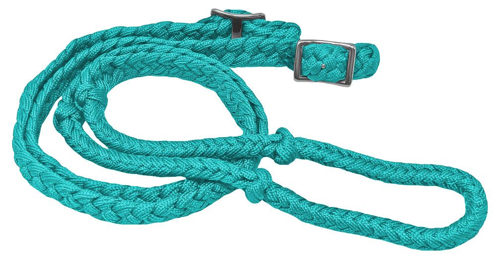 Professionelle Zügel für dein Pferd! Diese hochwertigen geflochtenen Zügel aus Baumwolle sind 7 Fuß (ca. 2,1m) lang und 2,5cm breit. Mit 4 praktischen Knoten für perfekten Halt und zwei vernickelten Conway-Schnallen zur individuellen Anpassung. Weich und griffig in der Hand, aber dennoch robust genug für anspruchsvolles Reiten. Perfekt für Fassrennen, Trailriding oder tägliches Training. Einfach in kaltem Wasser mit milder Seife zu reinigen. In verschiedenen attraktiven Farben erhältlich. Keine Billigimporte - hier bekommst du Qualität die sich im Sattel beweist. Dein Pferd wird den Komfort zu schätzen wissen!