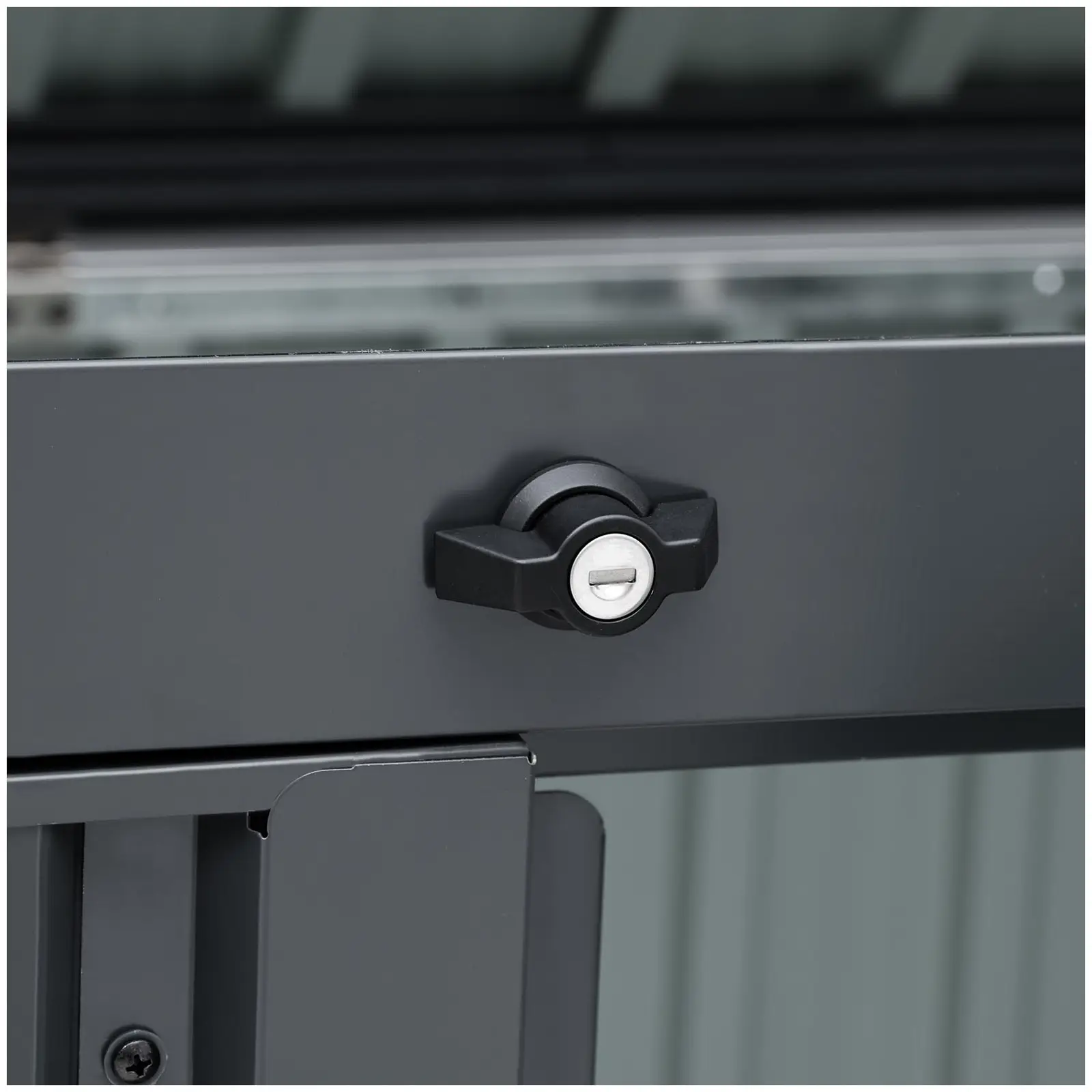 Die abschließbaren Doppeltüren schützen deine Sachen vor neugierigen Blicken, und der klappbare Deckel oben gibt dir zusätzlichen Zugang. Montiert ist die Box ratzfatz - die Anleitung ist bebildert und jedes Teil ist markiert. In Dunkelgrau, Grün oder Warmgrau passt sie sich deinem Gartenstil an. Inklusive zwei Paar Handschuhe für den Aufbau - wie praktisch ist das denn?