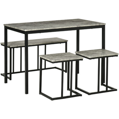 • HOMCOM 3er Essgruppe - Küchentisch Mit 2 Stühlen In Grau/Weiß